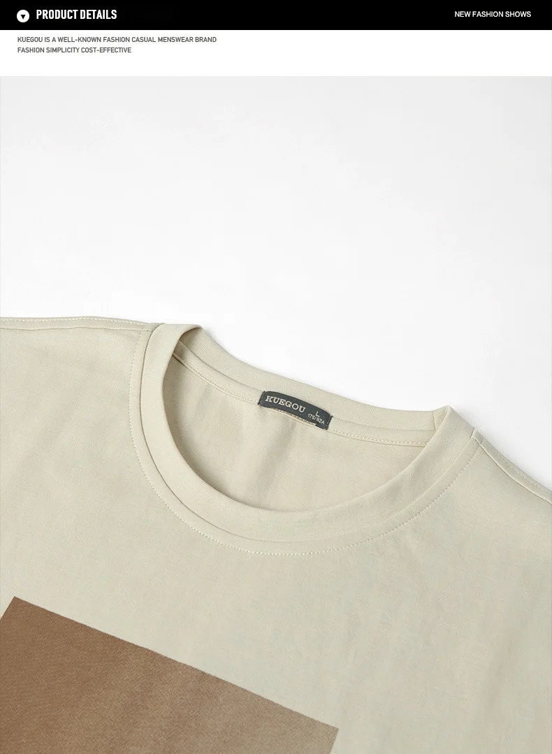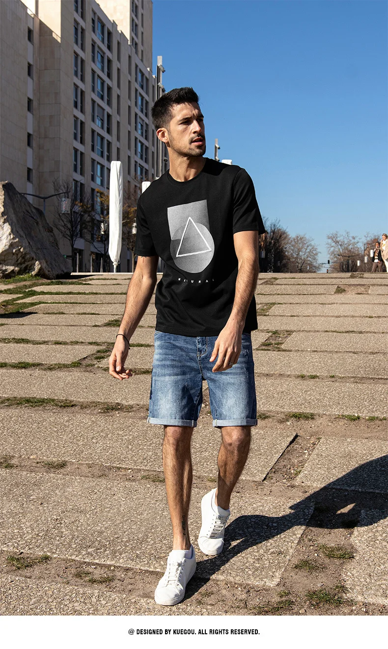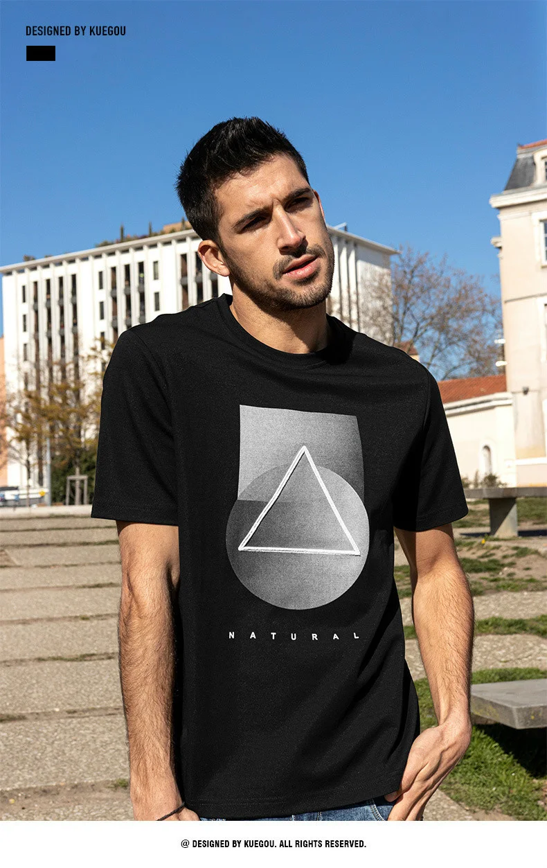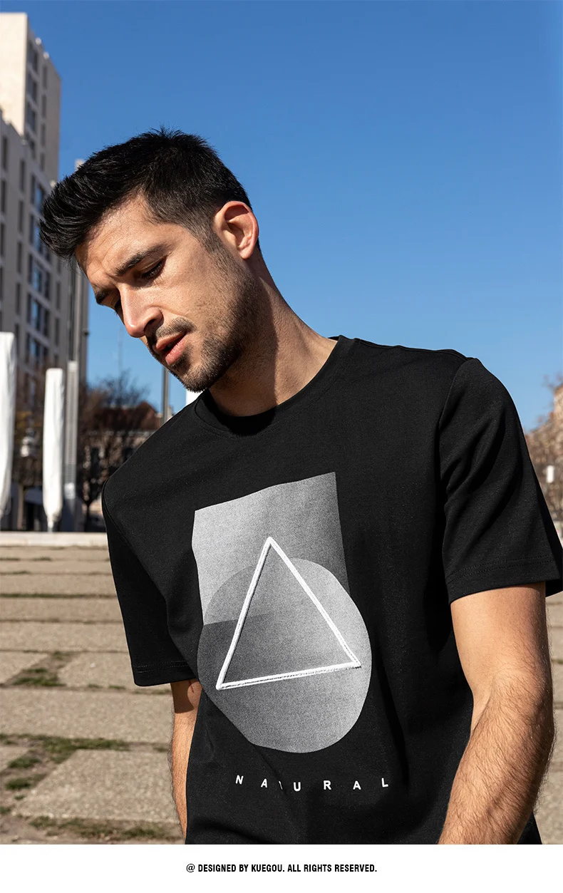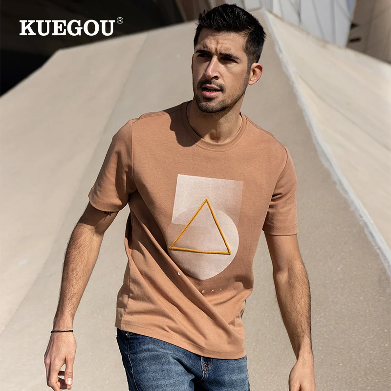 KUEGOU 2022 летняя хлопковая черная футболка с вышивкой для мужчин брендовая футболка с коротким рукавом модная одежда Топ 10897