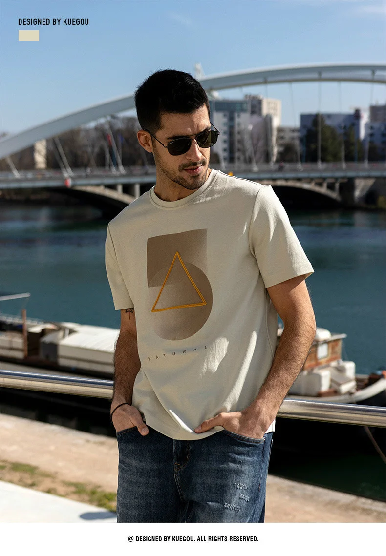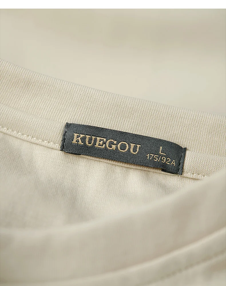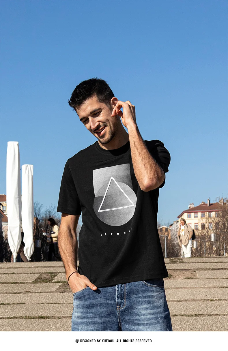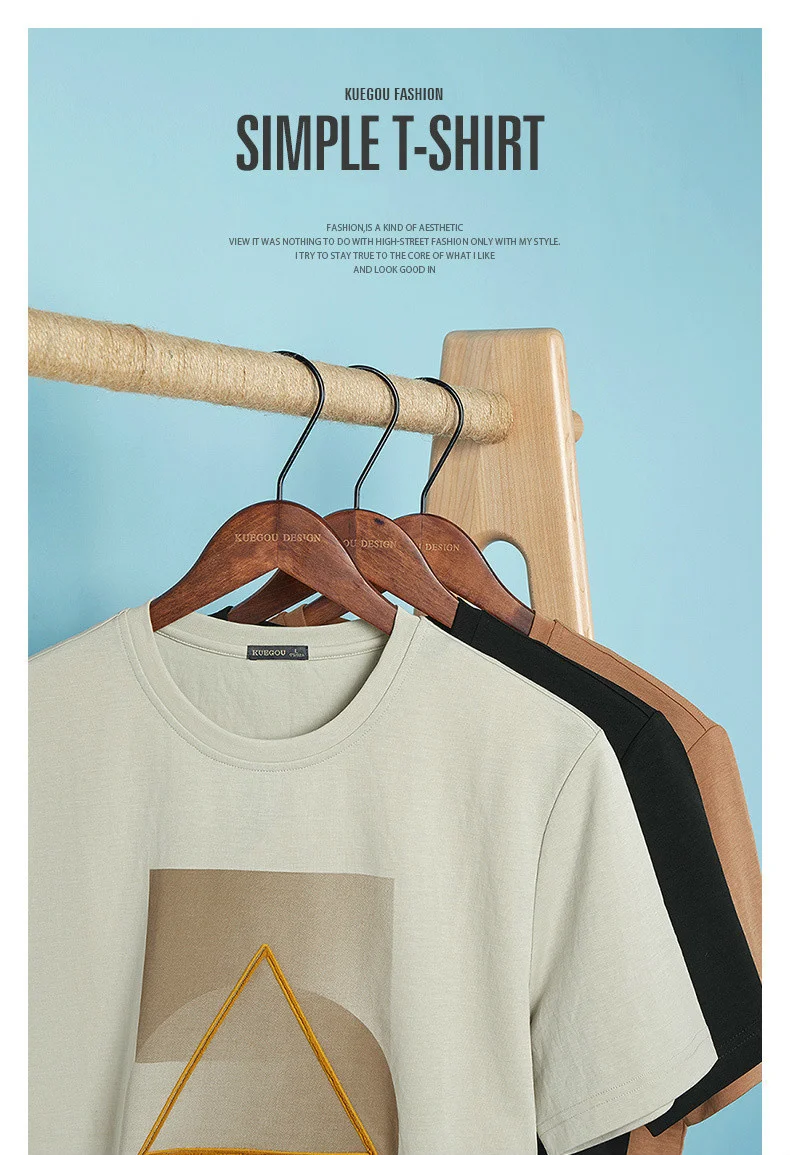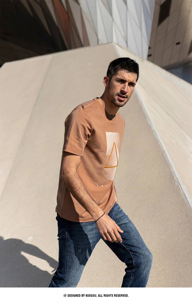KUEGOU 2022 летняя хлопковая черная футболка с вышивкой для мужчин брендовая футболка с коротким рукавом модная одежда Топ 10897