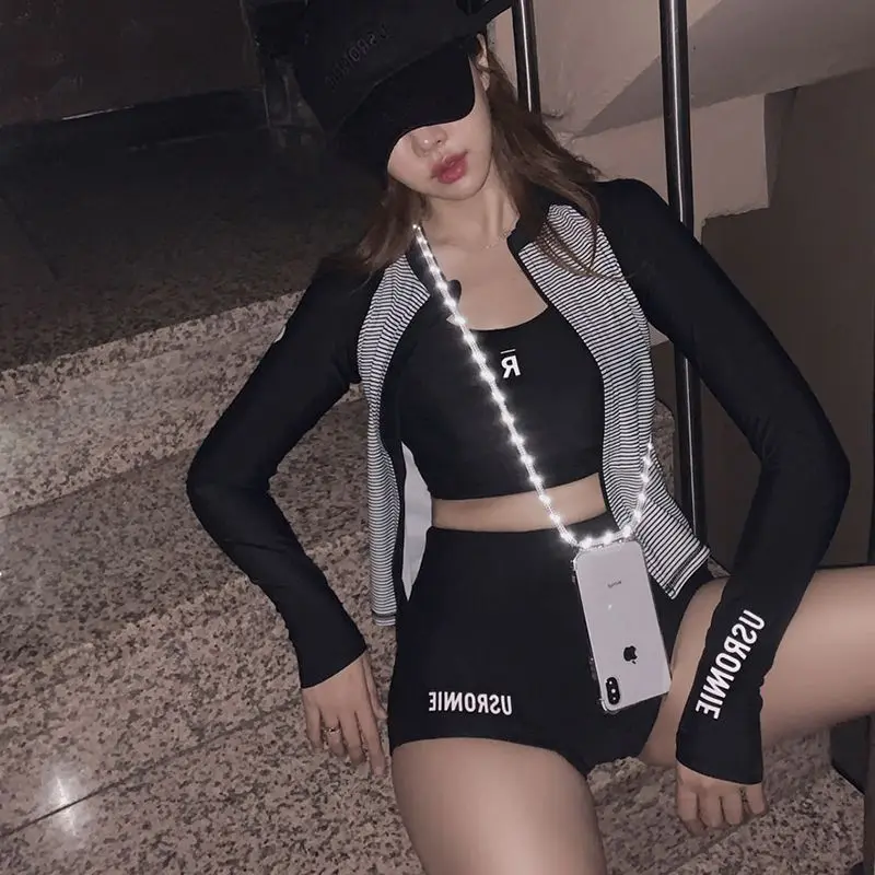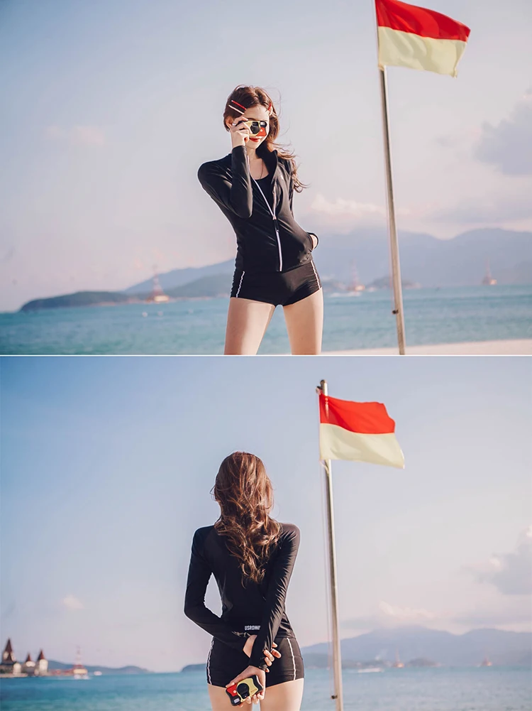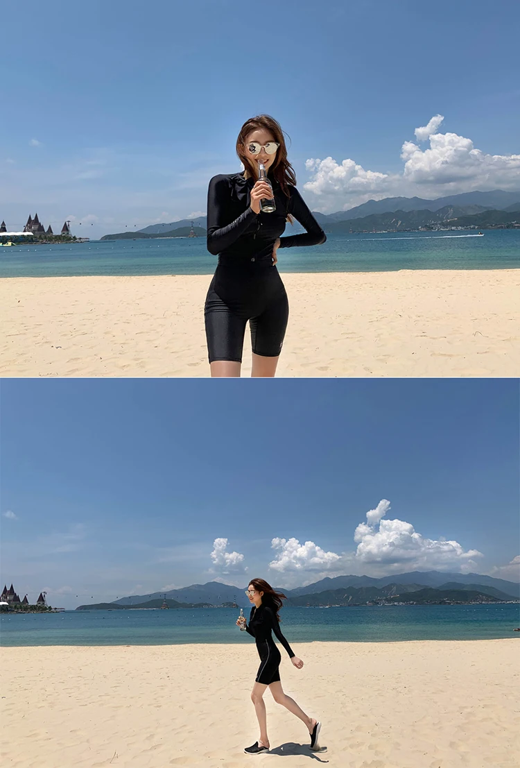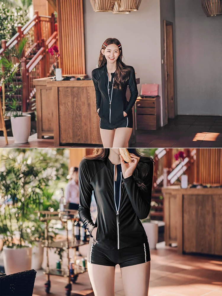Новинка 2021 г., женская спортивная пляжная одежда, купальник из 3 предметов, черный купальник с длинными рукавами, летний пляжный костюм для серфинга, защитная накидка пуш-ап