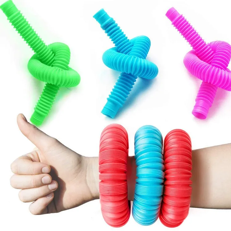 Цветная Пластиковая Игрушка-антистресс в виде поп-трубки, развивающая игрушка для снятия стресса, креативная волшебная игрушка, Пластиковая Складная волшебная игрушка