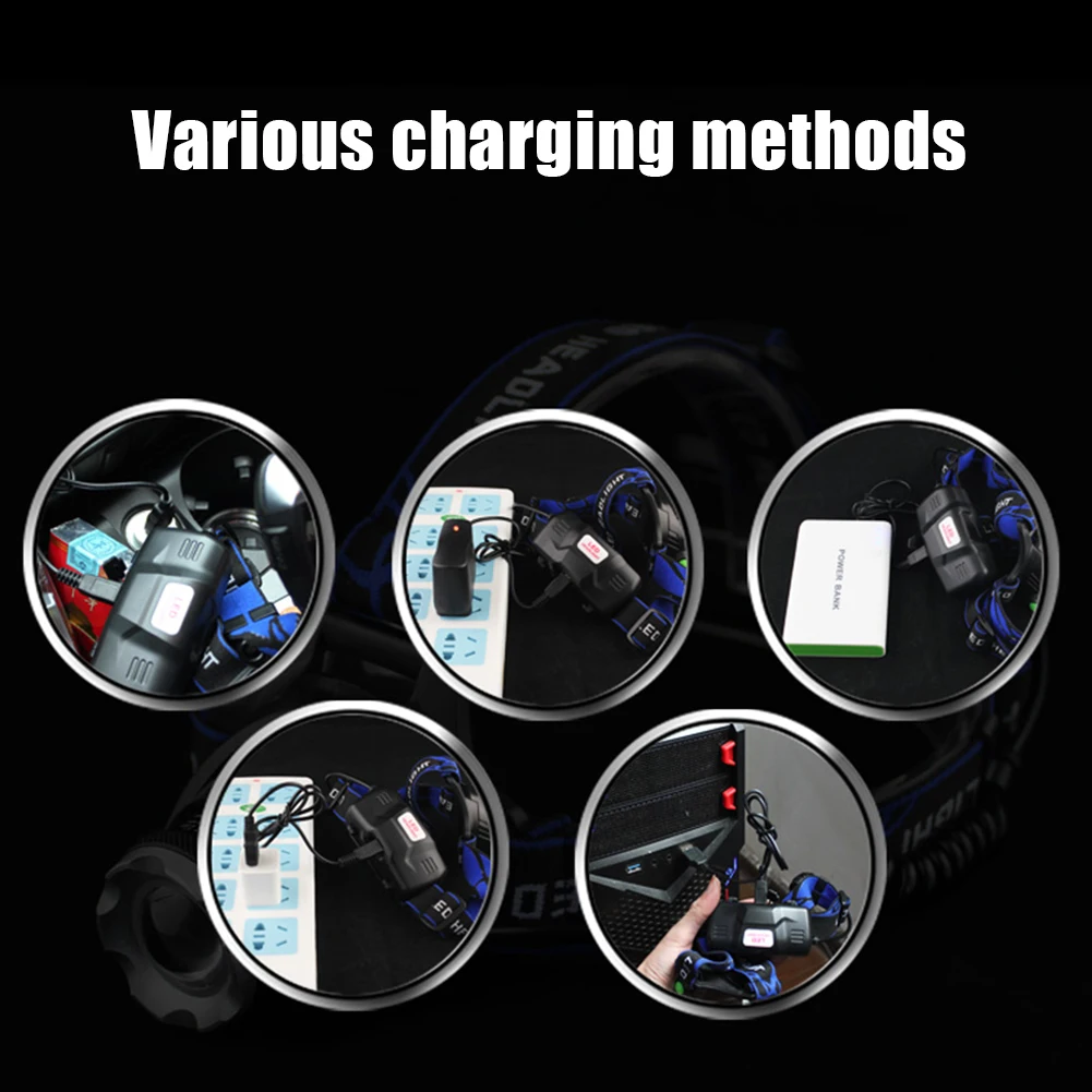 Светодиодный головной светильник T6 с телескопическим зумом, USB аккумуляторная лампа для майнинга, вращающийся светильник для рыбалки с углом освещения, лампа с белым светильник