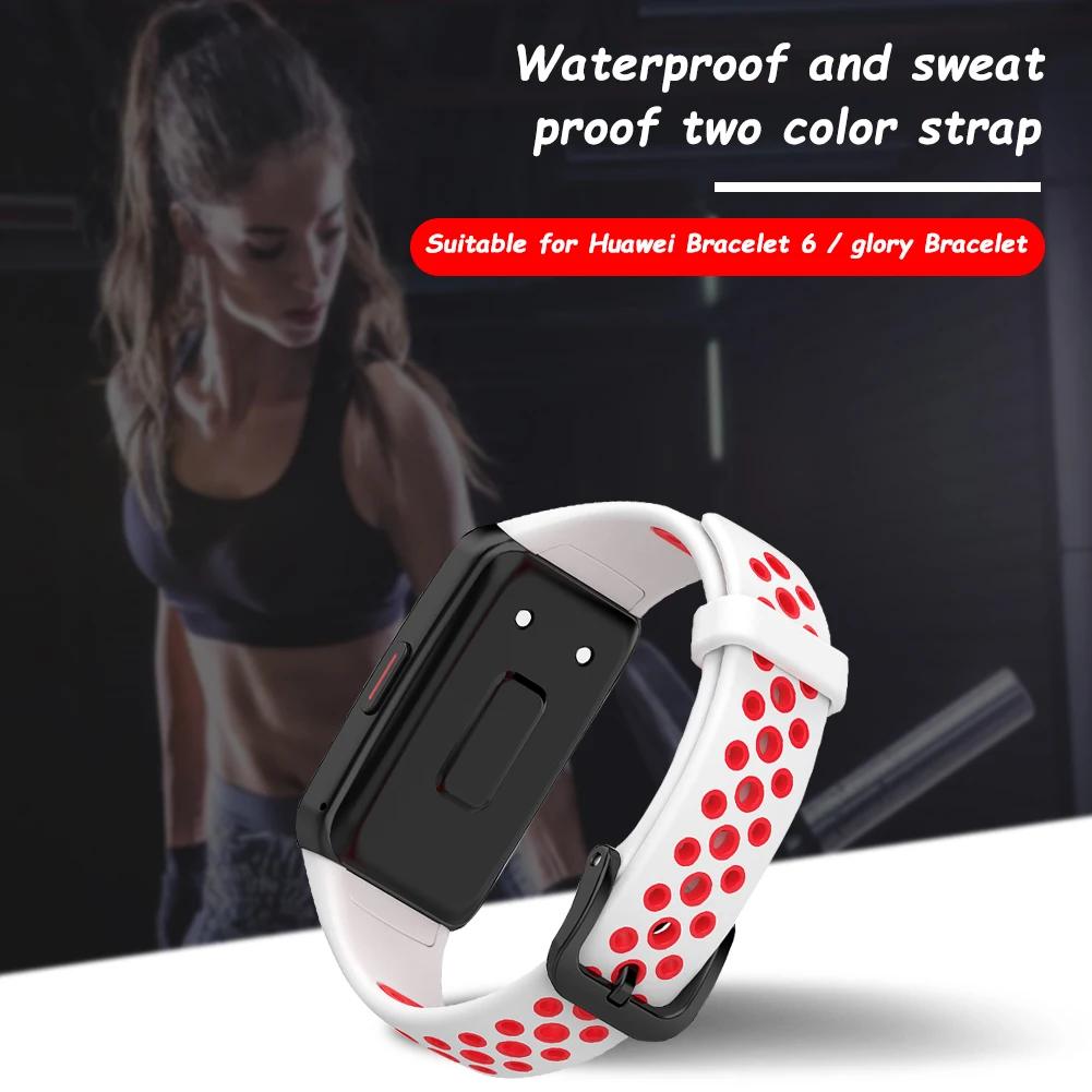 Силиконовый ремешок для часов Huawei Band 6, дышащий двухцветный сменный Браслет для Huwei Honor Band 6, ремешок для часов