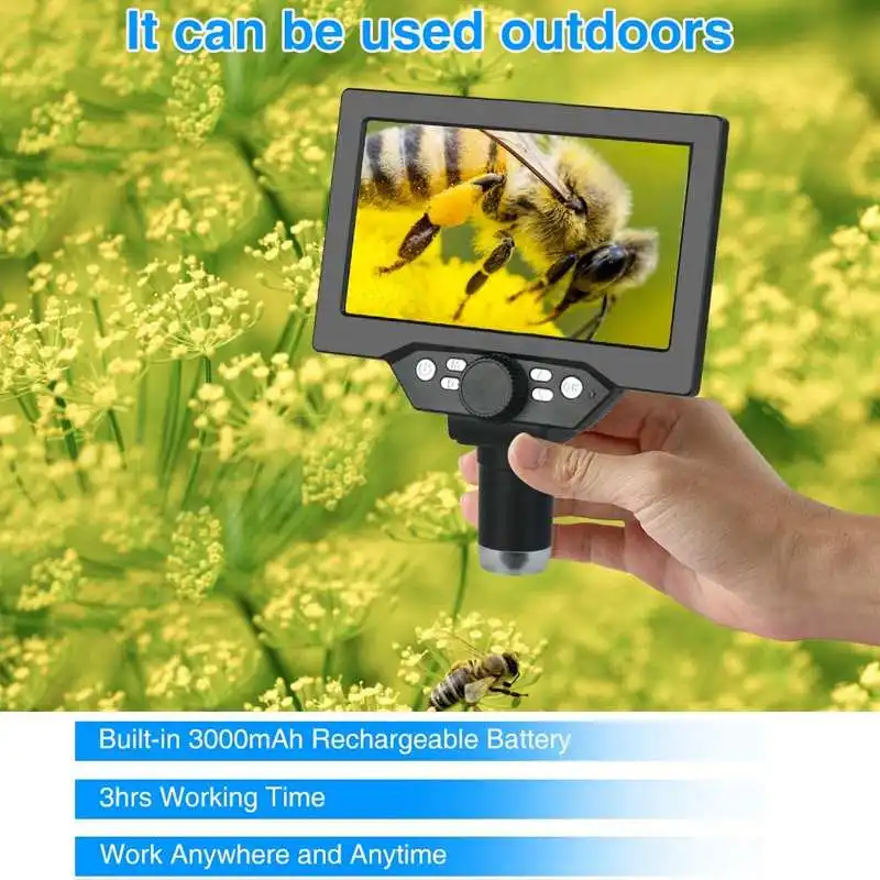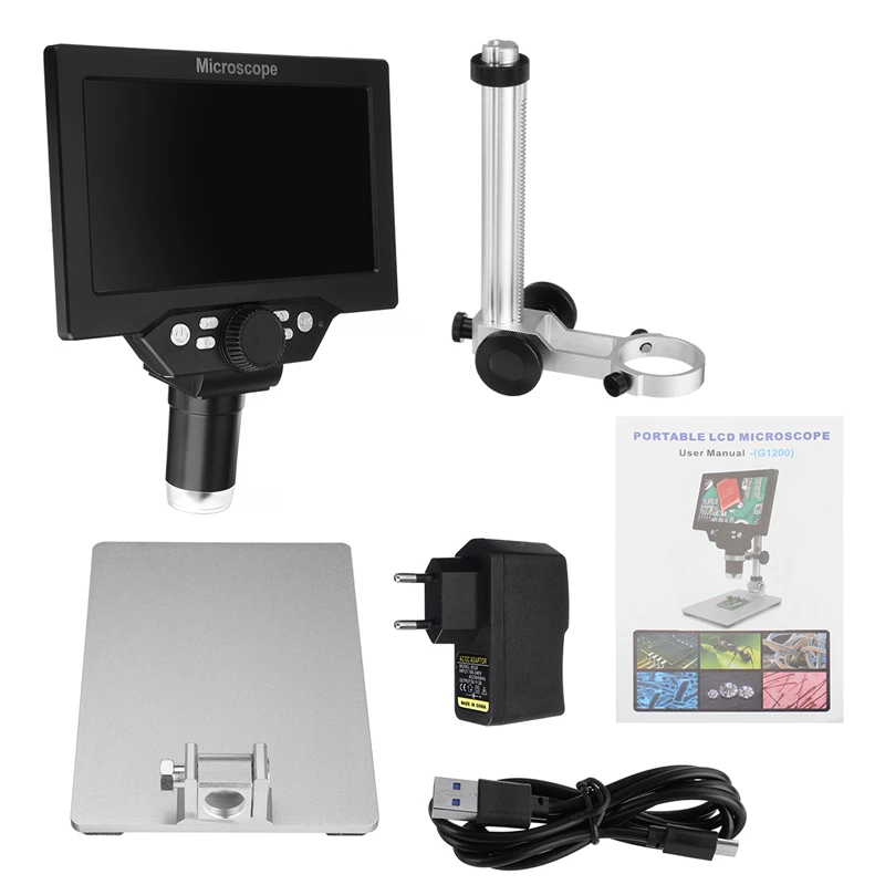 Цифровой микроскоп G1200, 7-дюймовый HD ЖК-дисплей, микроскопы 12MP 1-1200X с непрерывным усилением, 500X 1000X