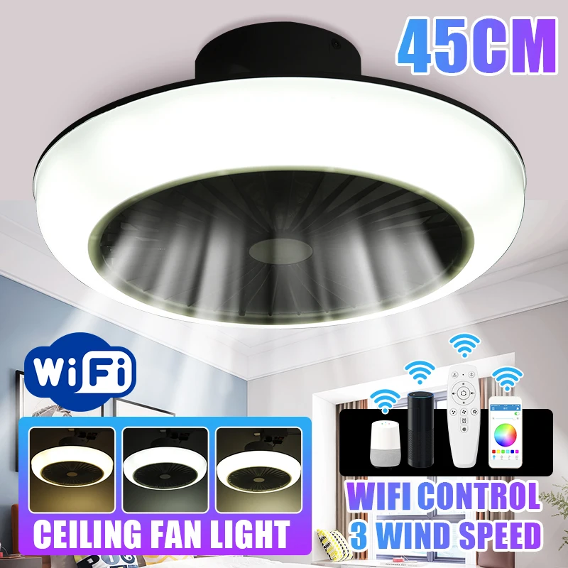 Современный светодиодный потолочный вентилятор с Wi-Fi, лампа с подсветкой, Домашний Светильник для спальни с дистанционным управлением, 3 ветра, регулируемая скорость, Регулируемый потолочный вентилятор, 45 см