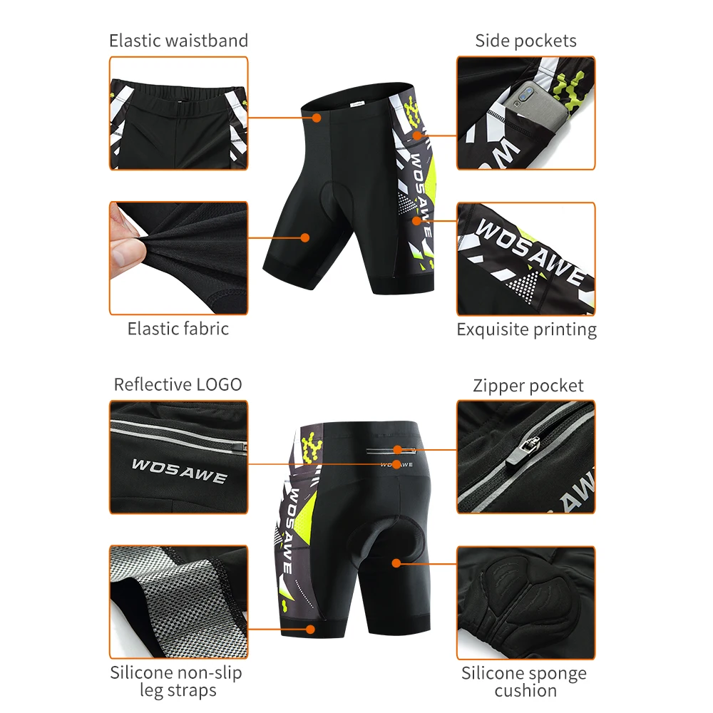 Велосипедные шорты WOSAWE Мужские, дышащие, гелевые, для профессиональной езды на велосипеде, летние, для горных и шоссейных велосипедов, 5D