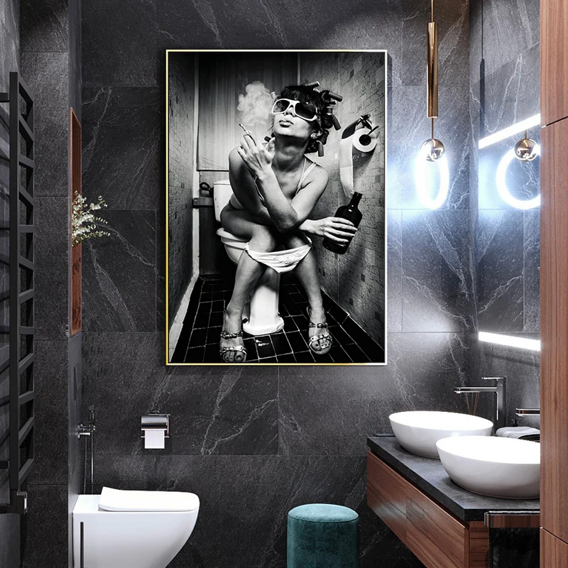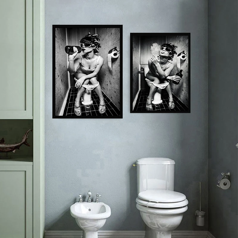 Унитаз сексуальная женщина бар девушка курить и пить холст картины плакаты и принты Куадрос настенное искусство для гостиной домашний декор