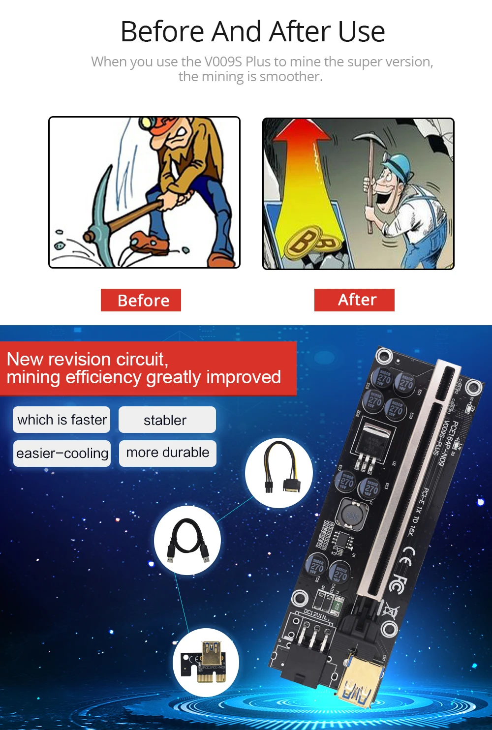 TISHRIC 6 шт. VER009S Plus Райзер-карта PCI 6Pin 009S Майнер для ма...