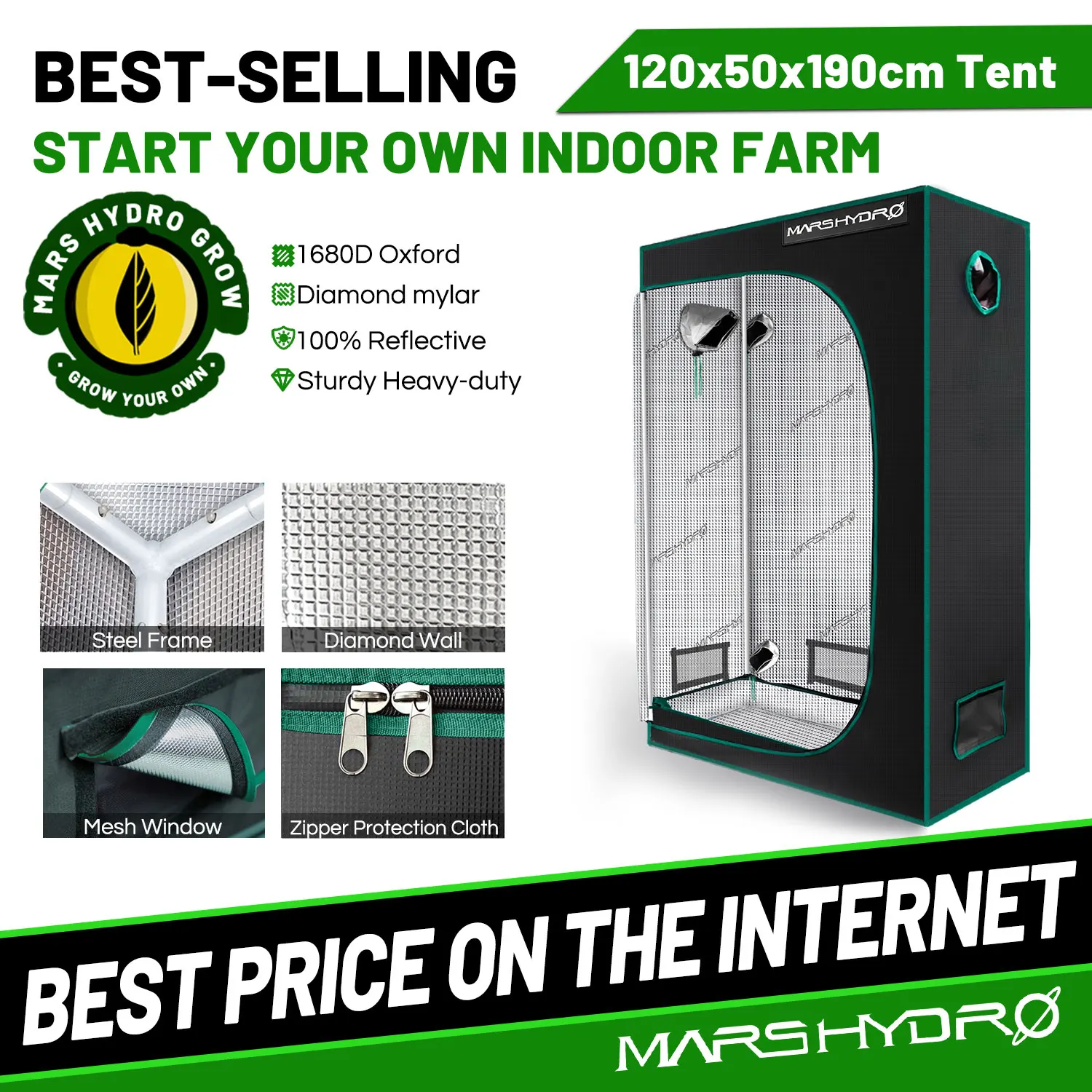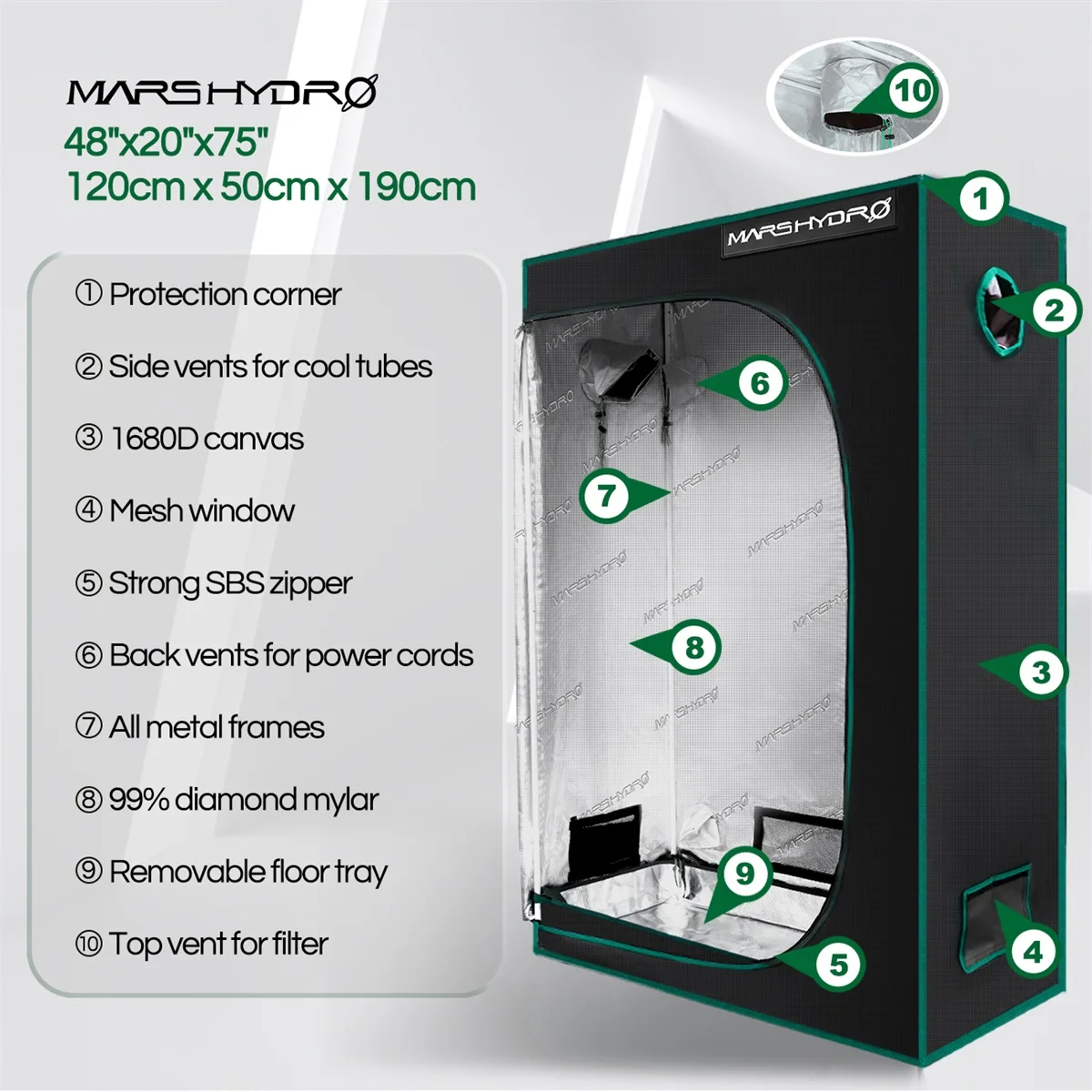 Тент Mars Hydro для выращивания растений, водонепроницаемый нетоксичный светоотражающий материал, 1680D, 120 х50х190 см, для комнатных растений