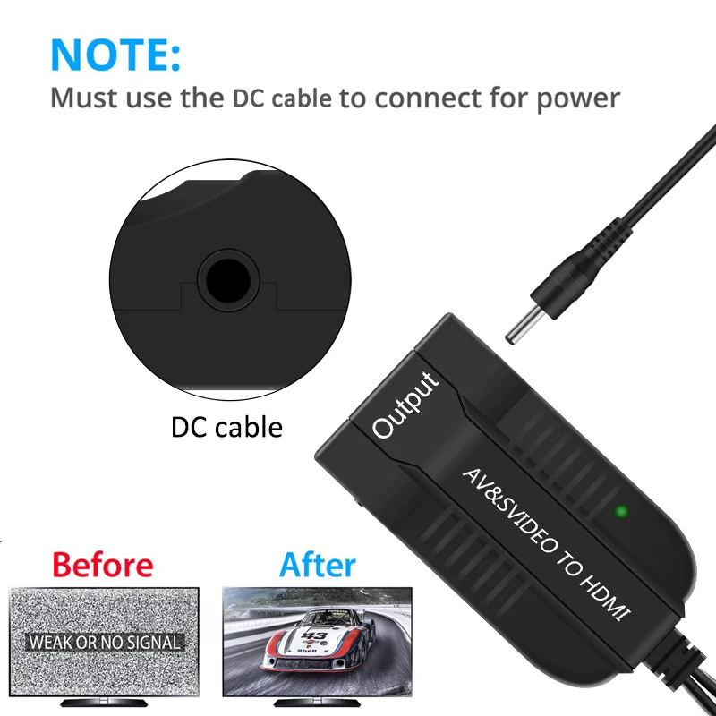 Этот мини AV/CVBS/s-video to HDMI конвертер является универсальным преобразователем для аналогового композитного ввода в HDMI 1080P(60 Гц) выход