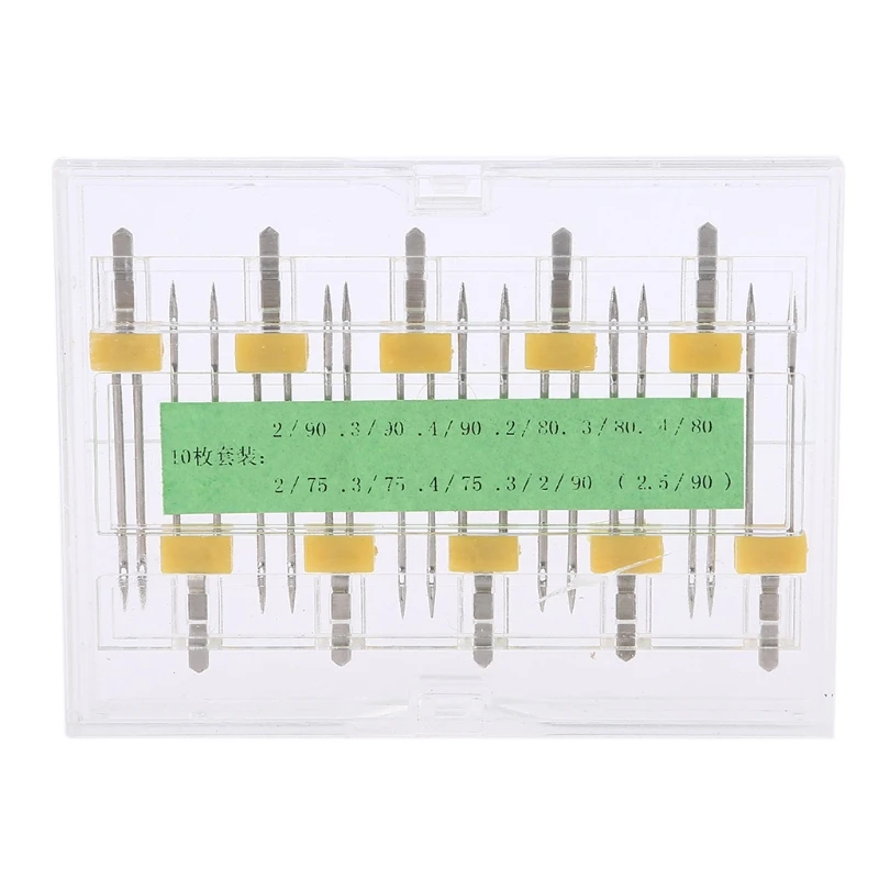 Двойные двойные иглы 10 размеров, двойные Стрейчевые иглы с пластиковой коробкой для бытовой многофункциональной швейной машины