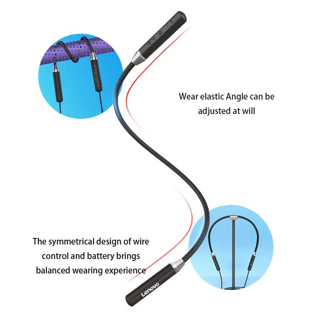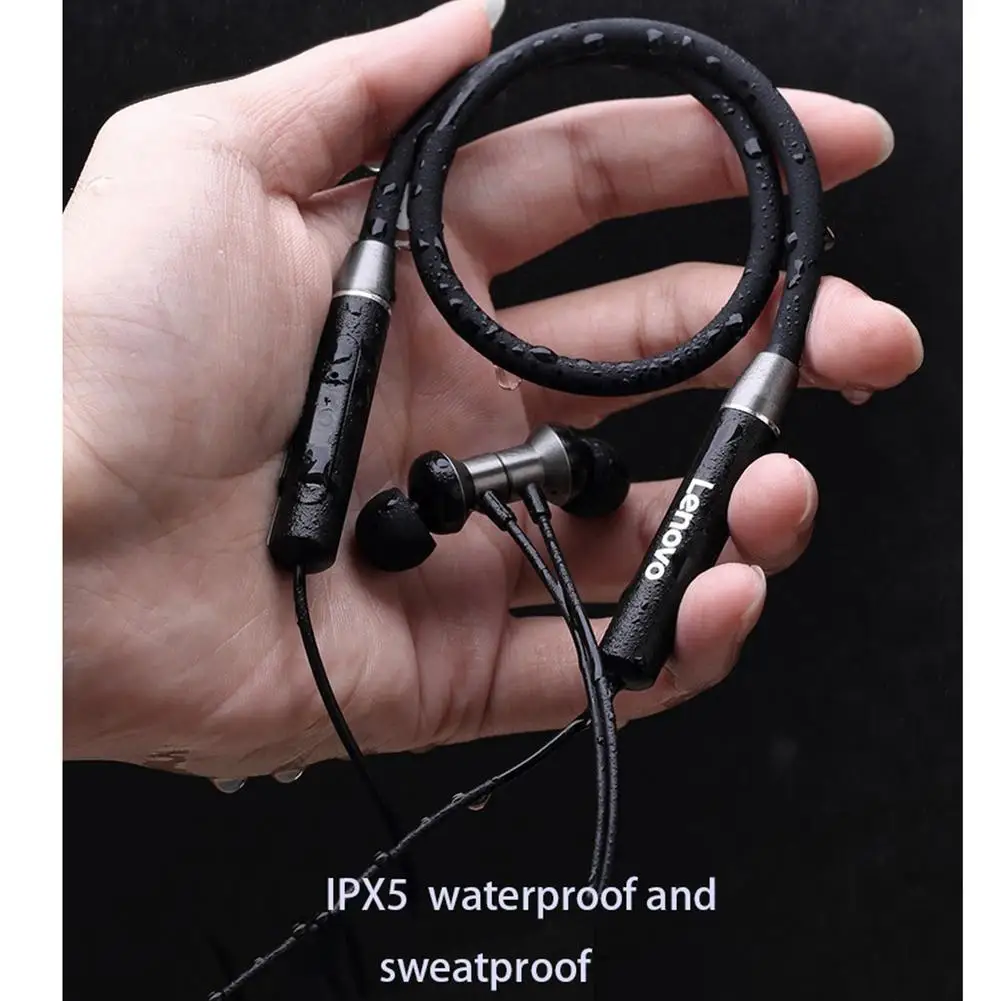 Оригинальные беспроводные наушники LenovoHE05 Bluetooth 5,0 с шейным ремешком, стерео спортивные водонепроницаемые магнитные наушники, спортивные наушники для бега с микрофоном