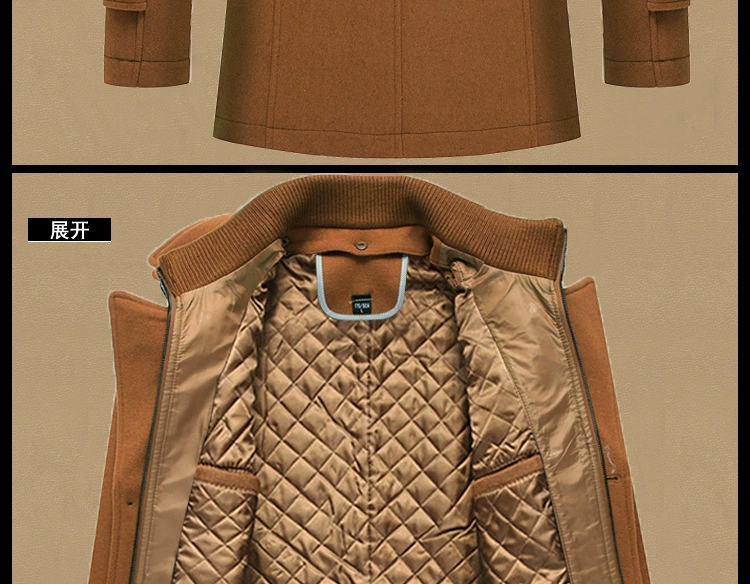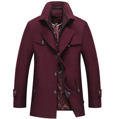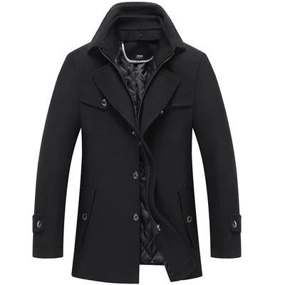 Пальто шерстяное с двумя воротниками для мужчин среднего возраста, утепленное однотонное пальто из хлопка, пальто зимнее для мужчин