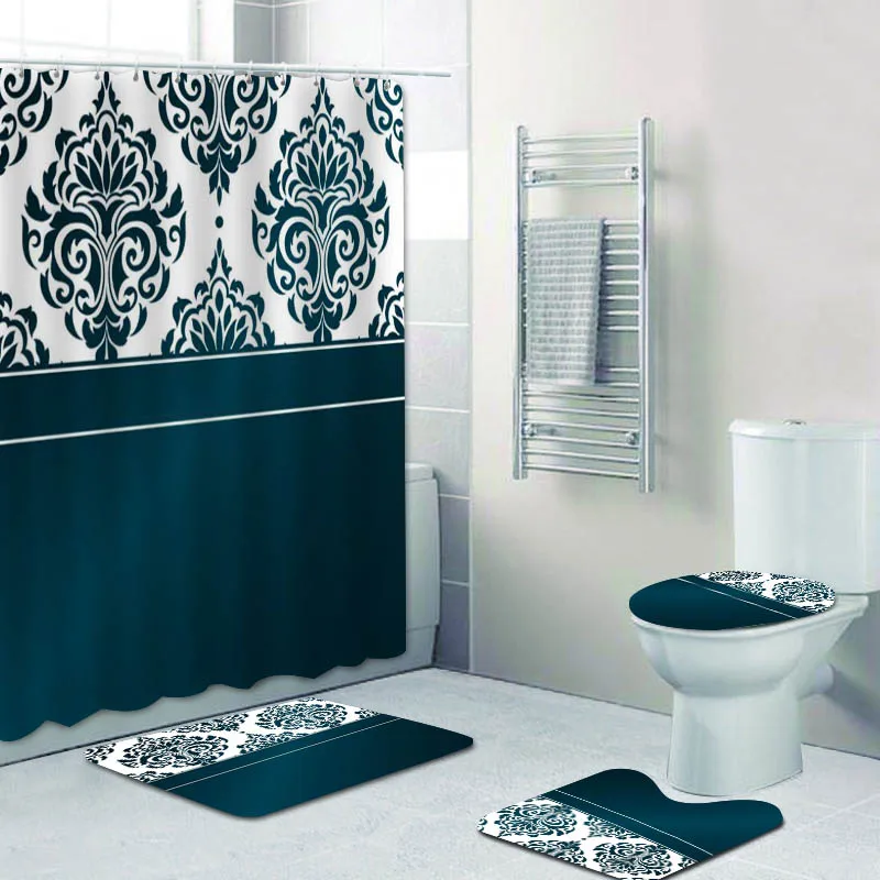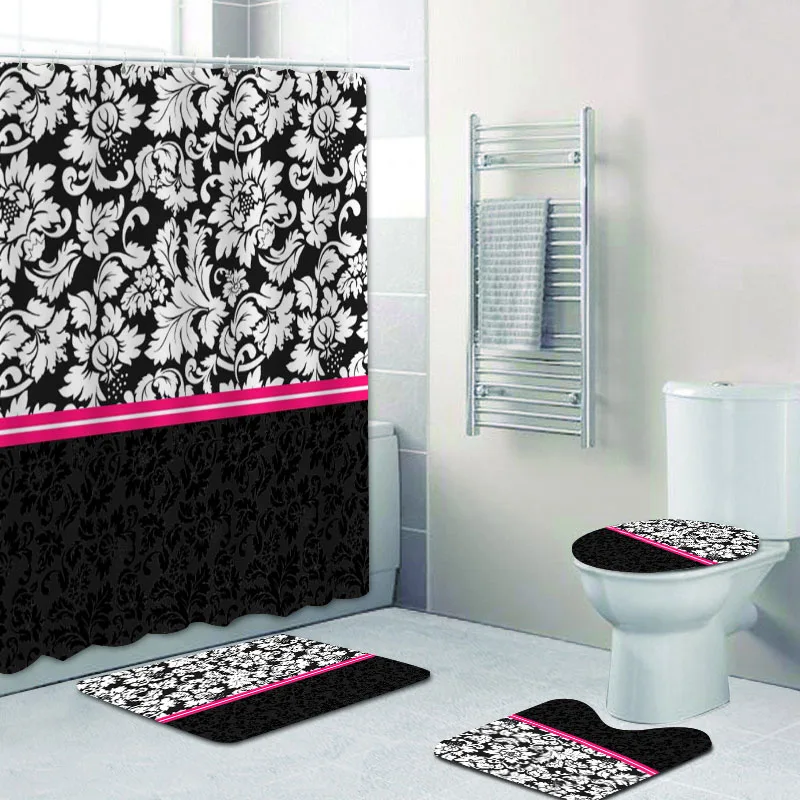Роскошная Черная Золотая Дамасская занавеска для душа, набор занавесок для ванны, Золотой великолепный дамасский узор, занавеска для ванной, коврик для туалета, домашний декор