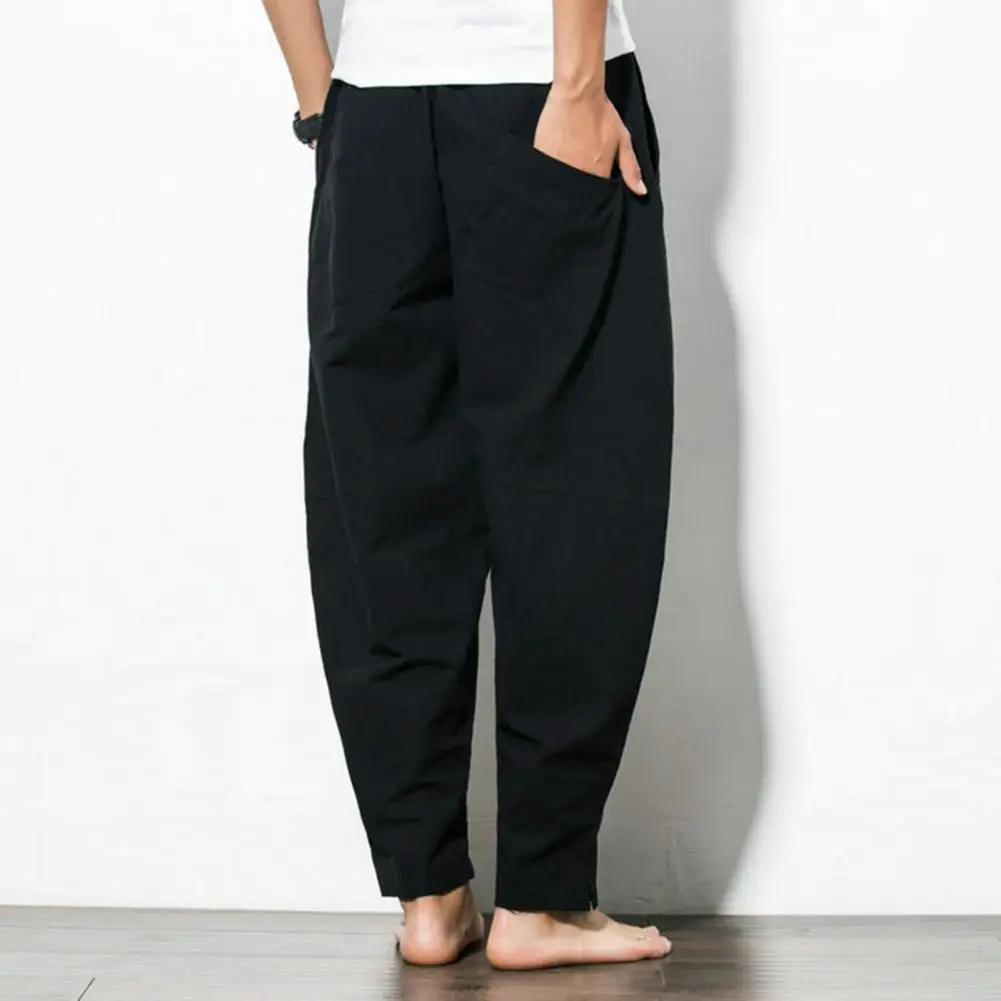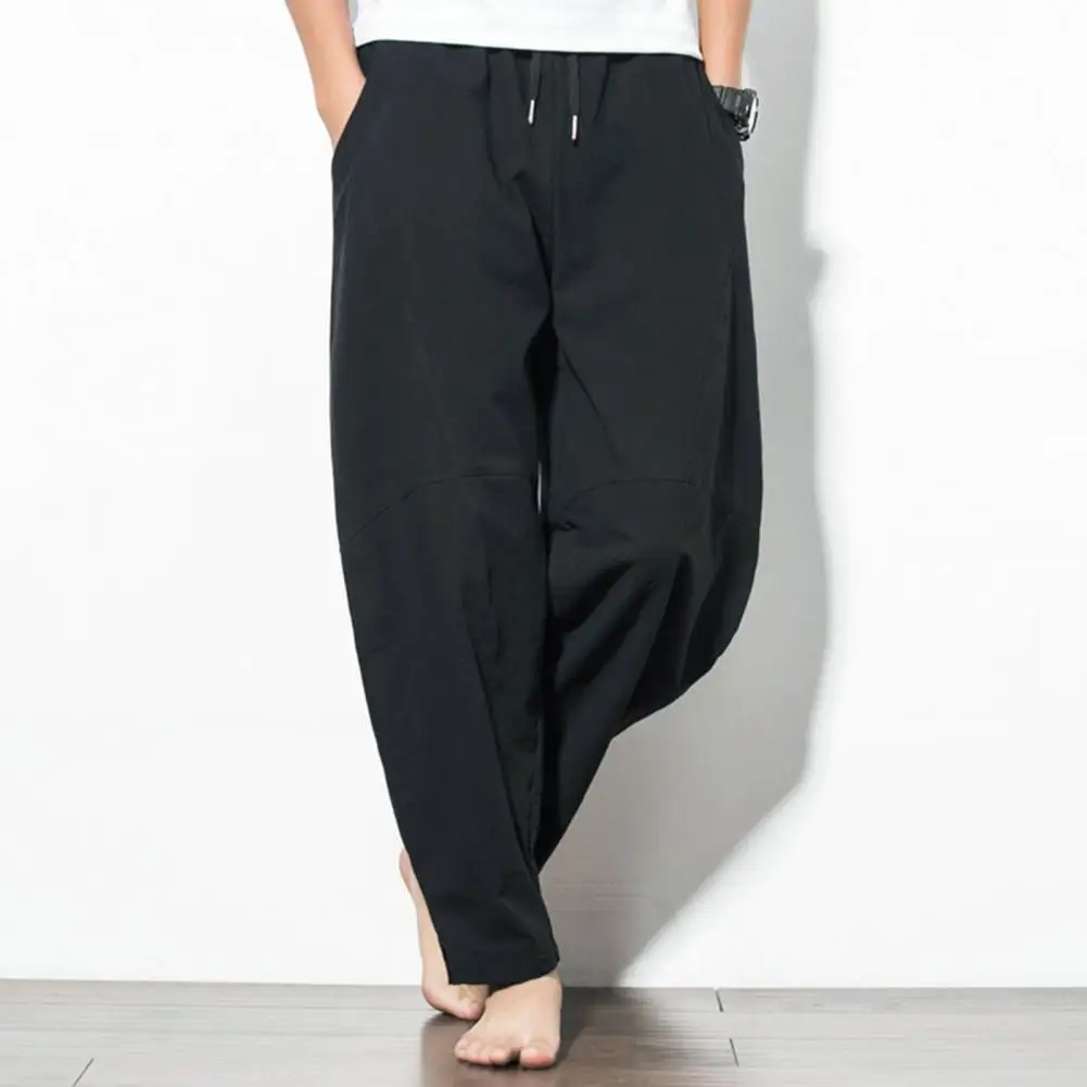 Мужские свободные летние брюки, однотонные, безопасные для кожи, с прямыми штанинами, льняные, бриджи, домашняя уличная одежда 4XL, на весну