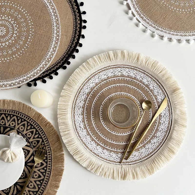 Изысканный Плетеный джутовый хлопковый коврик для стола в богемном стиле с принтом круглый коврик для еды столовая посуда подставка кухонный Декор