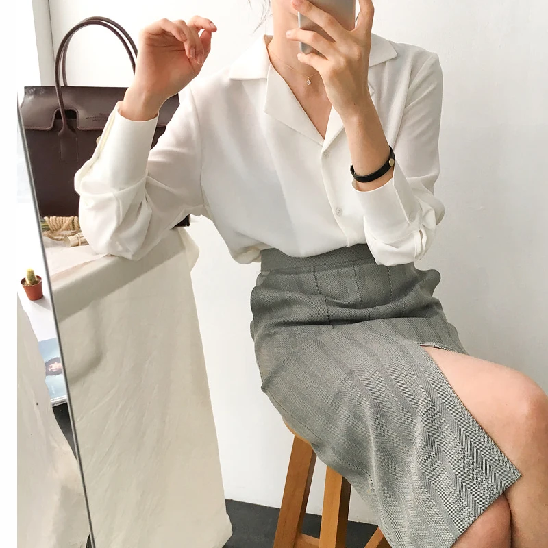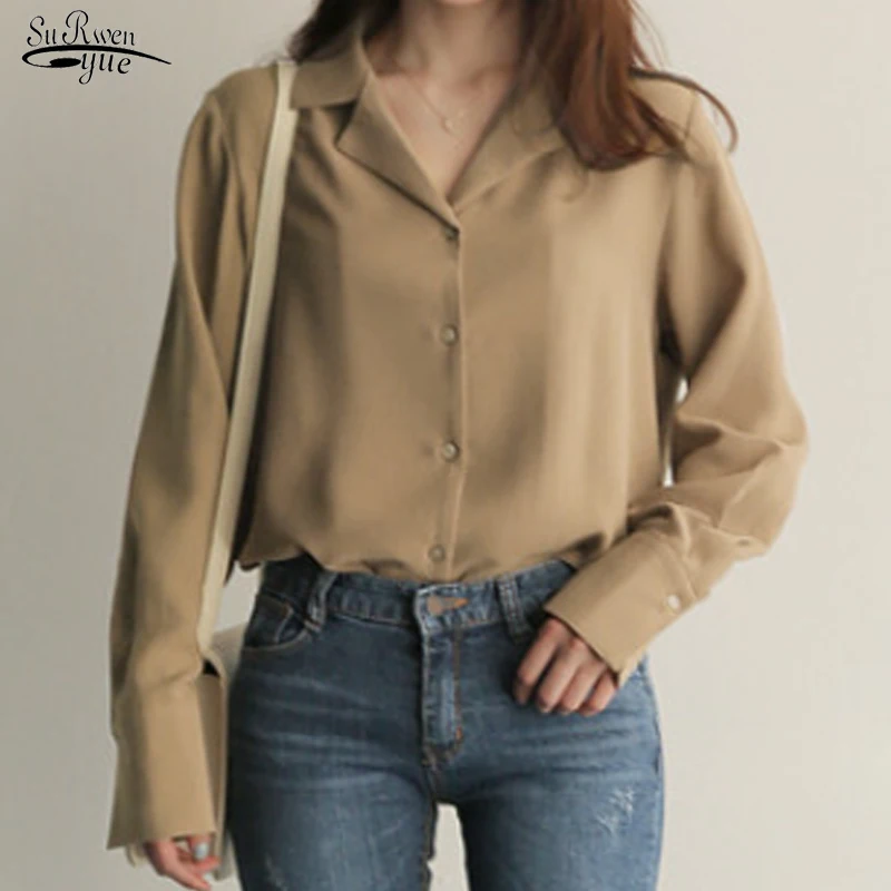 2022 винтажная однотонная белая Шифоновая Блузка Топы весенний Кардиган женские блузки с длинным рукавом Женские рубашки одежда женские блузы 9379 50