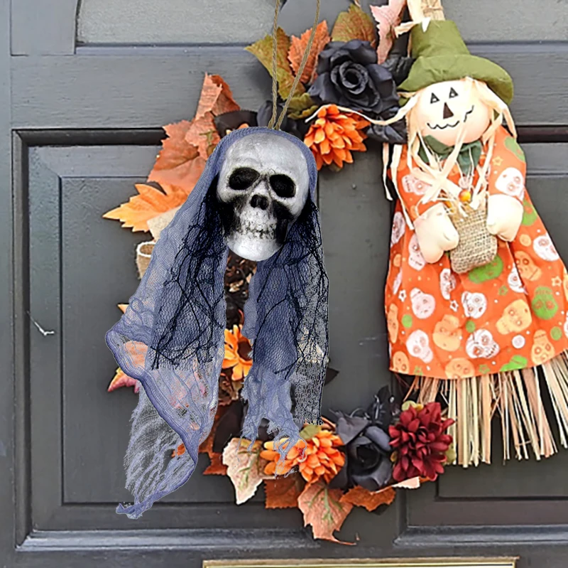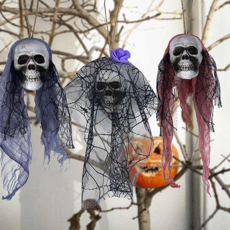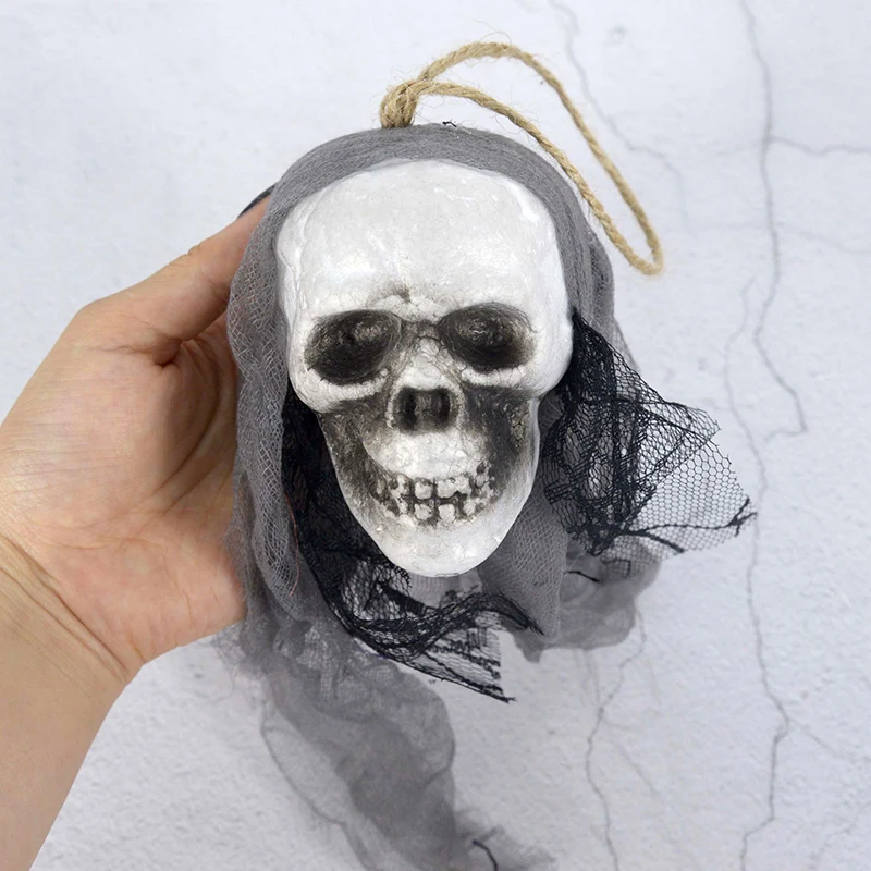 10 см пенопласт поддельный человеческий скелет голова Хэллоуин повесить Череп Кулон Крытый Открытый Декор 2021 Хэллоуин страшный реквизит с призраками