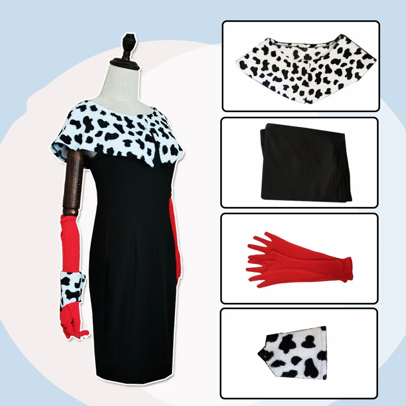 Костюмы для косплея, платья 101, далматинцы, Круэлла де Виль, аниме...