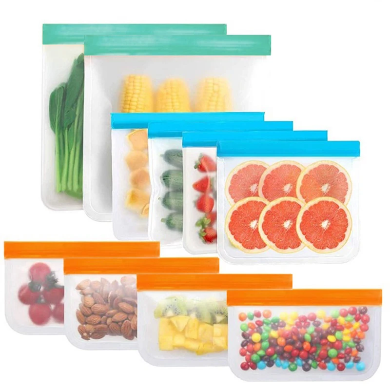 Силиконовый Пакет для продуктов, многоразовый пакет для сохранения свежести, герметичный пакет для фруктов и овощей, герметичный пакет на молнии для хранения продуктов