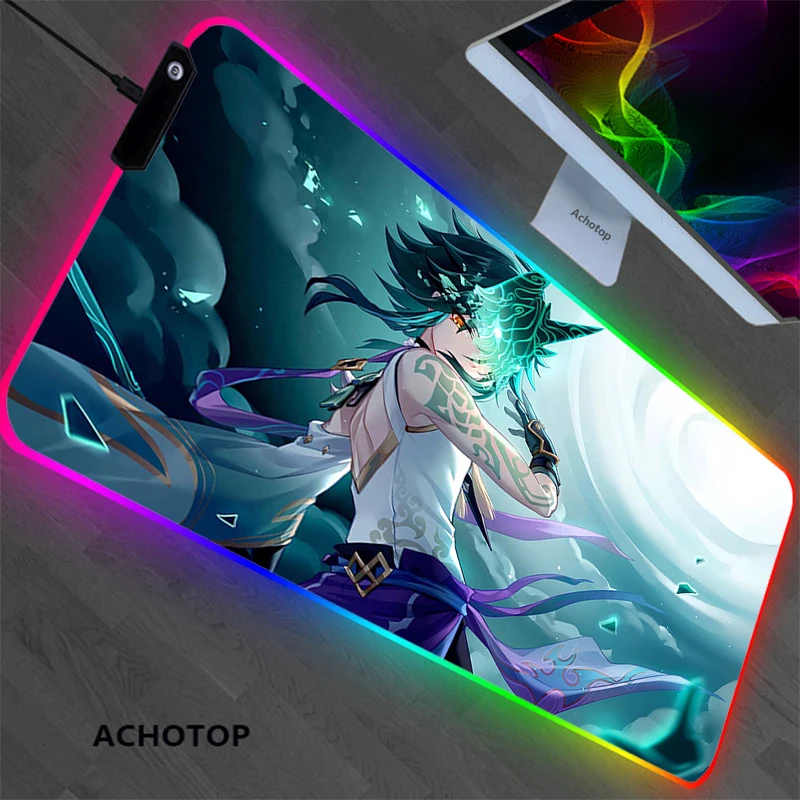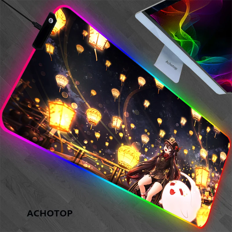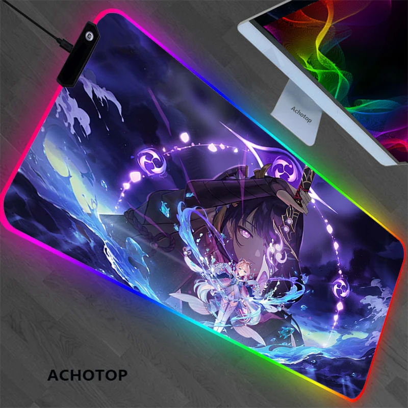 RGB Genshin impact игра в игры коврики для мыши Коврик для мыши Аниме Мультфильм Размер xl геймерский коврик для мыши XXL клавиатура настольный компьютер ПК коврик для ноутбука