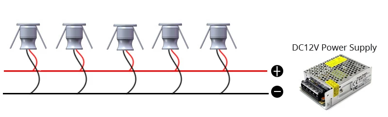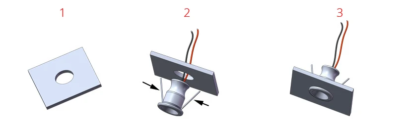 1. Открытое отверстие: 15 мм 2. Утопленный 3. Подключение к источнику питания 12 В