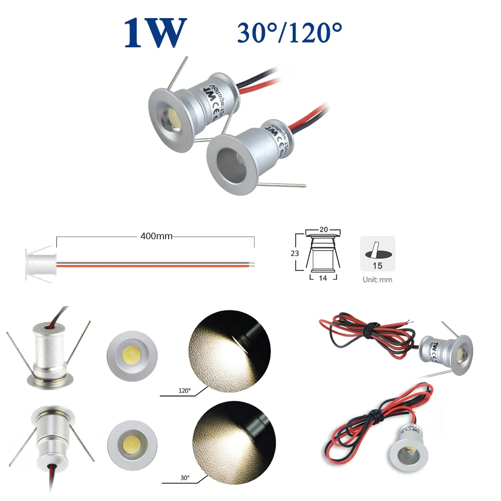 Название: Мини прожектор Мощность: 1 Вт Входное напряжение: DC12V Индекс цветопередачи: >80 Ra Люмен: 100 лм Угол луча: 30/60 (по умолчанию) Цвет: теплый белый 3000K; Натуральный белый 4000K; Чистый белый 6000K Цвет корпуса: белый/черный/серебристый Размер: D20 * h23мм Размер отверстия: 15 мм Длина кабеля: 400 мм Вес нетто: 20 г Установка: Reccessed Работа: -20 ℃ ~ 100 ℃ Класс водонепроницаемости: IP65, нельзя использовать под водой, Может использоваться: Парная сауна