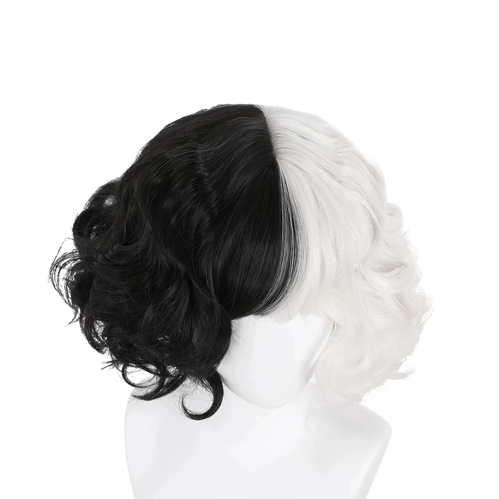 Аниме парики Ведьма Круэлла де Виль Косплей Короткий черно-белый па...