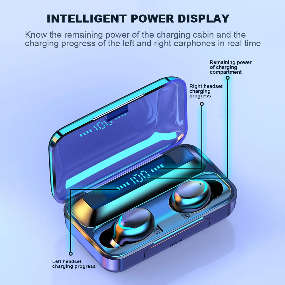TWS-наушники F9 с поддержкой bluetooth 5,0, 2200, зарядным футляром...
