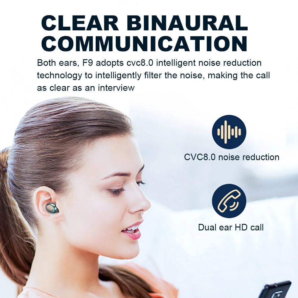 Наушники-вкладыши TWS с F9 наушники Bluetooth 5,0 Беспроводной науш...
