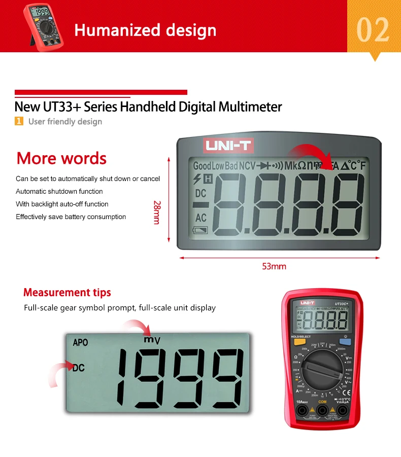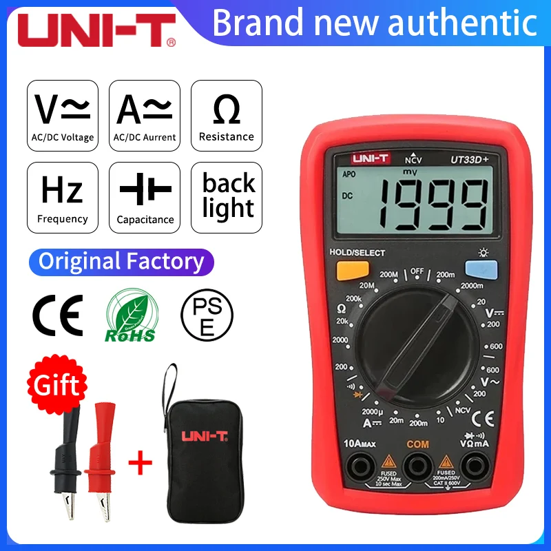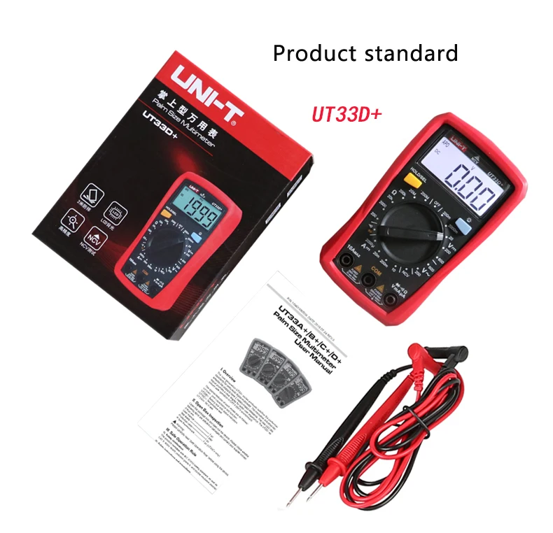 Цифровой мультиметр UT33D + Mini, UNI-T в, NCV, размер ладони, ручной диапазон, вольтметр, амперметр, тестер сопротивления