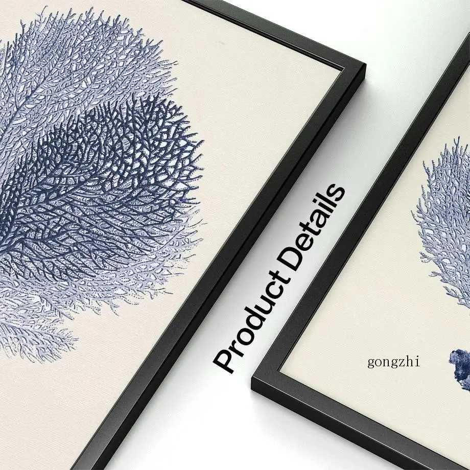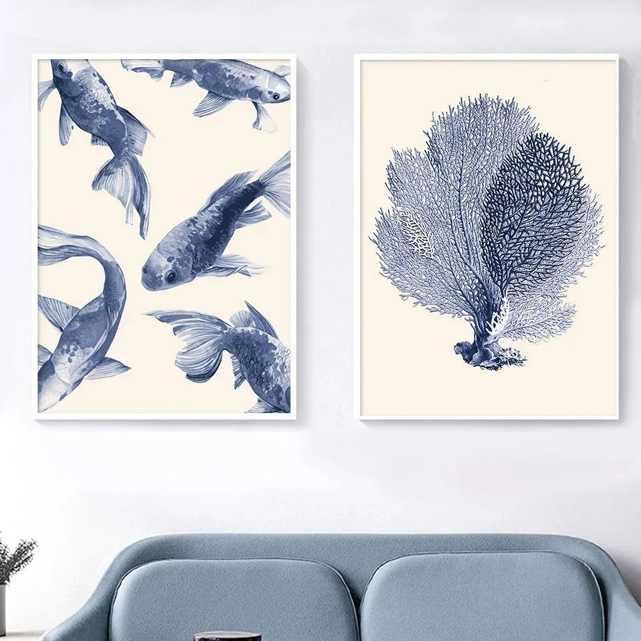 Винтажные скандинавские постеры с морскими косточками, ракушками, кораллами, синяя Картина на холсте и принты, настенные картины для декора гостиной