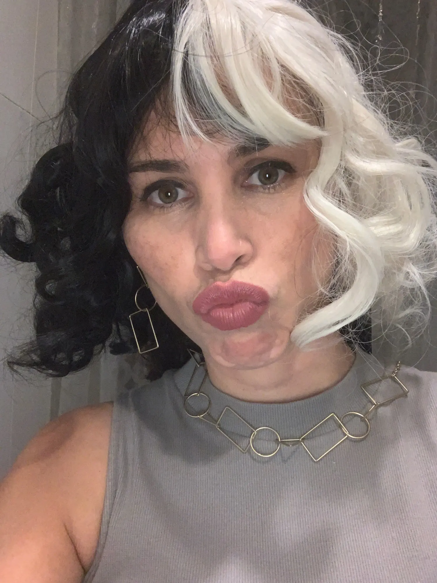 Парик термостойкий для косплея Cruella de Vil, короткие вьющиеся волосы черного, молочного, белого цветов, с шапочкой