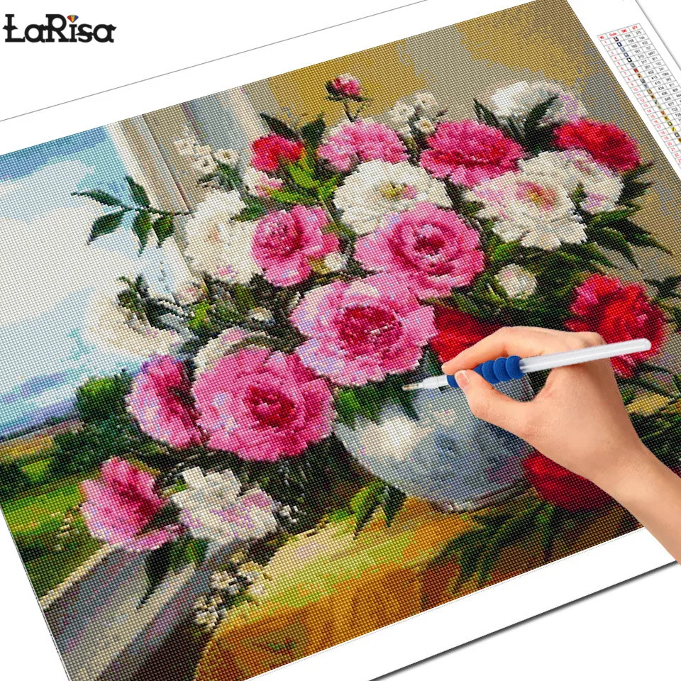 Набор для вышивки крестом, алмазная вышивка с пионами, полная выкладка, круглая Алмазная картина с розовыми цветами, мозаика, стразы, домашний декор