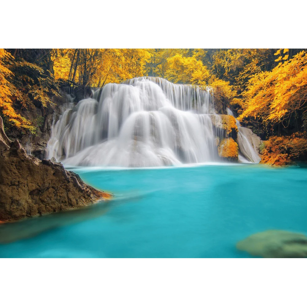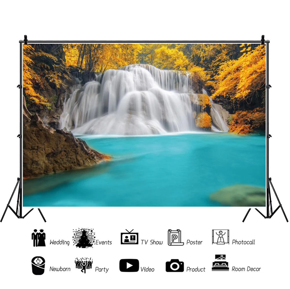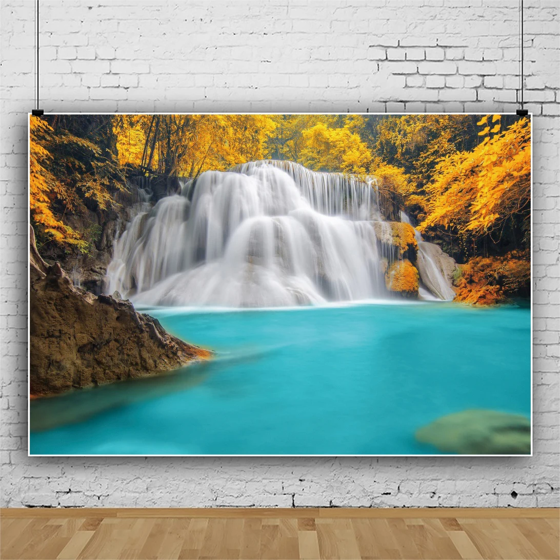 Laeacco осенние фоны для фотосъемки Голубое озеро кленовый лес водопад вид природы фотосессия плакат баннер фотографические фоны