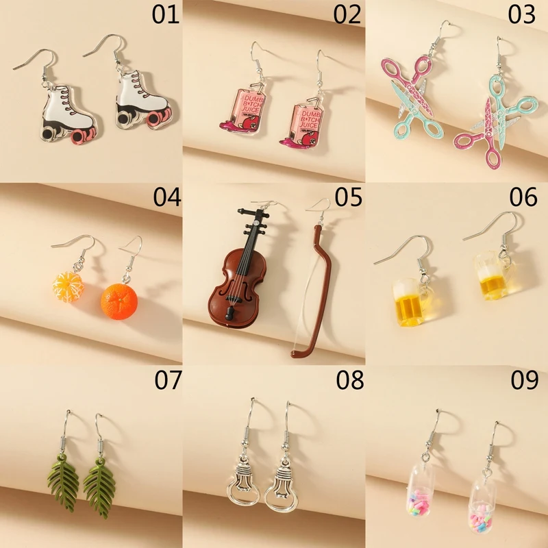 Забавные акриловые серьги-подвески, в форме листьев, оранжевых, скрипок, роликовых коньков, подвеска, серьги для женщин, детские подарочные украшения