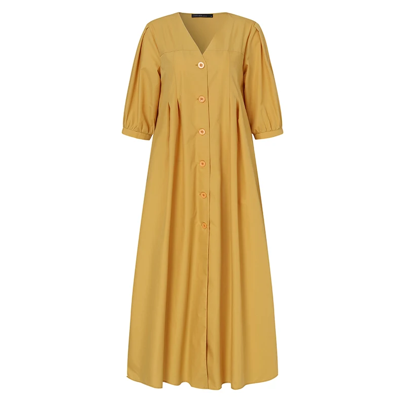 Модное Плиссированное Платье-рубашка, женский летний сарафан ZANZEA 2022, Повседневное Платье макси с полурукавом, женское платье с V-образным вырезом, оверсайз