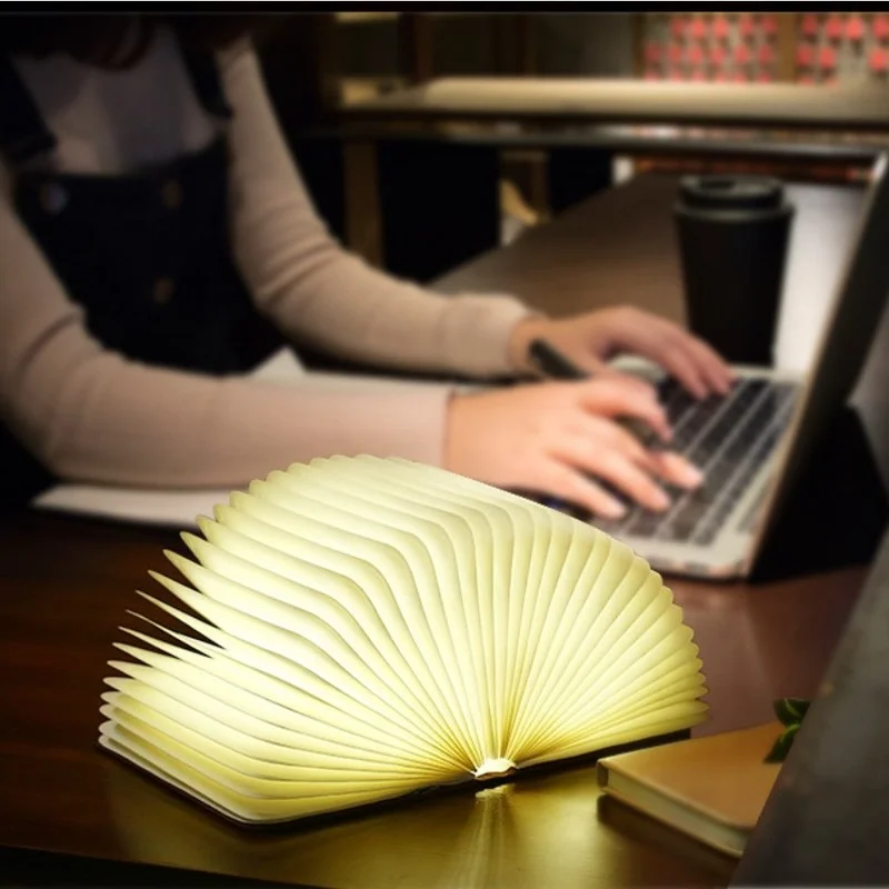 Деревянный ночник для книг, Складная Настольная лампа с USB-зарядко...