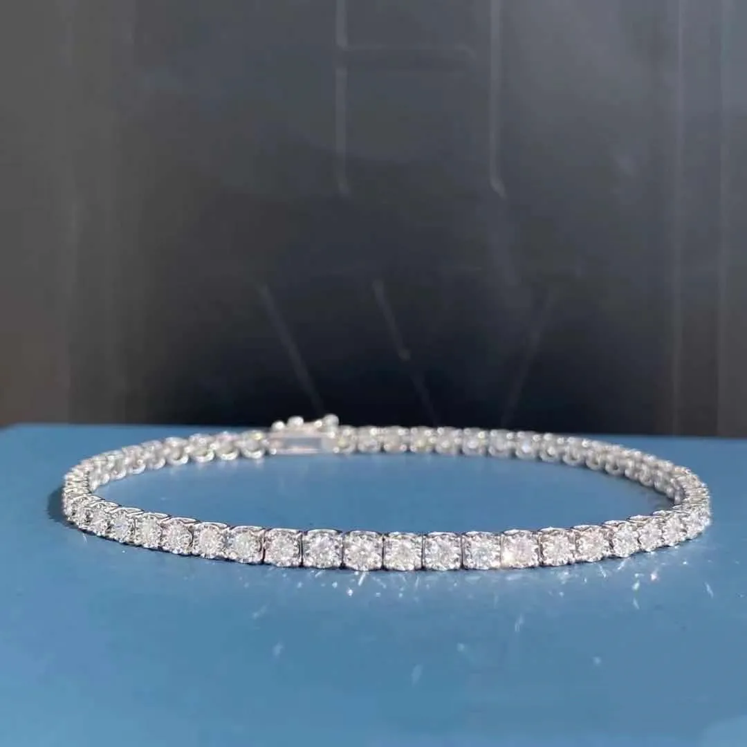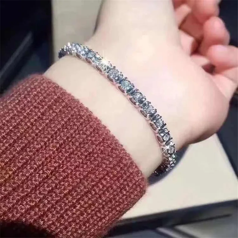 Материал: настоящий МуассанитФорма: круглаяЦвет: Белый D ЦветРазмер моиссанита: 0.5ct(5 мм), всего 20 штук,Металл: Стерлинговое Серебро S925 пробы, покрытое белым золотомДлина браслета: около 17 смКаждая штука moissanite с GRA сертификатом и 100% бриллиантом
