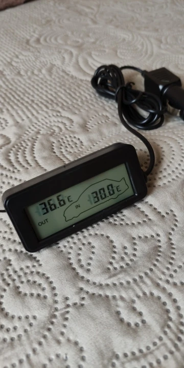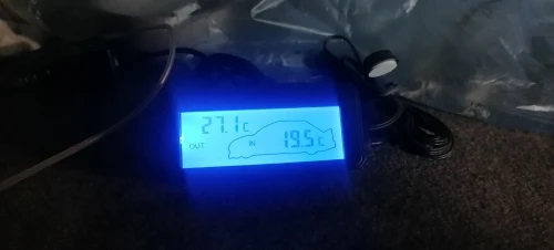 Ну что, пришло очень быстро, упаковка пойдет. Приборчик работает от батарейки (шла в комплекте), а подсветка идет от прикуривателя. Хз, может при вкл даже батарейку заряжает, погллядим че почем, время покажет. А, еще вроде брешет на пару градусов