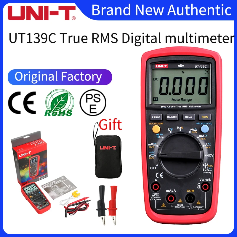 Цифровой мультиметр UNI-T UT139C с автоматическим выбором диапазона, измеритель истинных среднеквадратичных значений, ручной тестер конденсаторов, 6000 отсчетов, вольтметр, температурный
