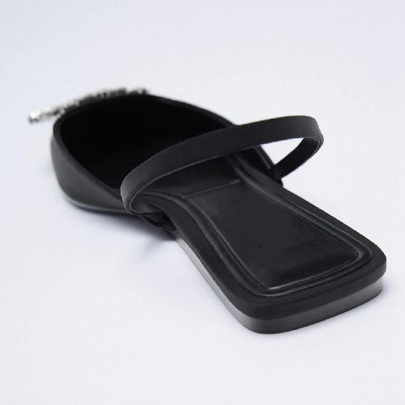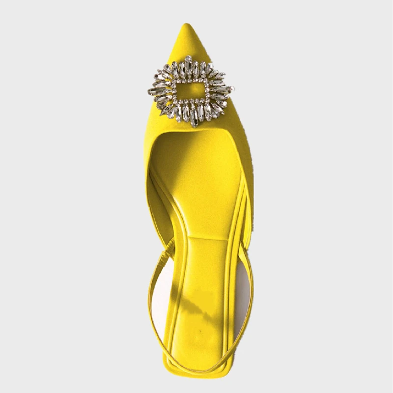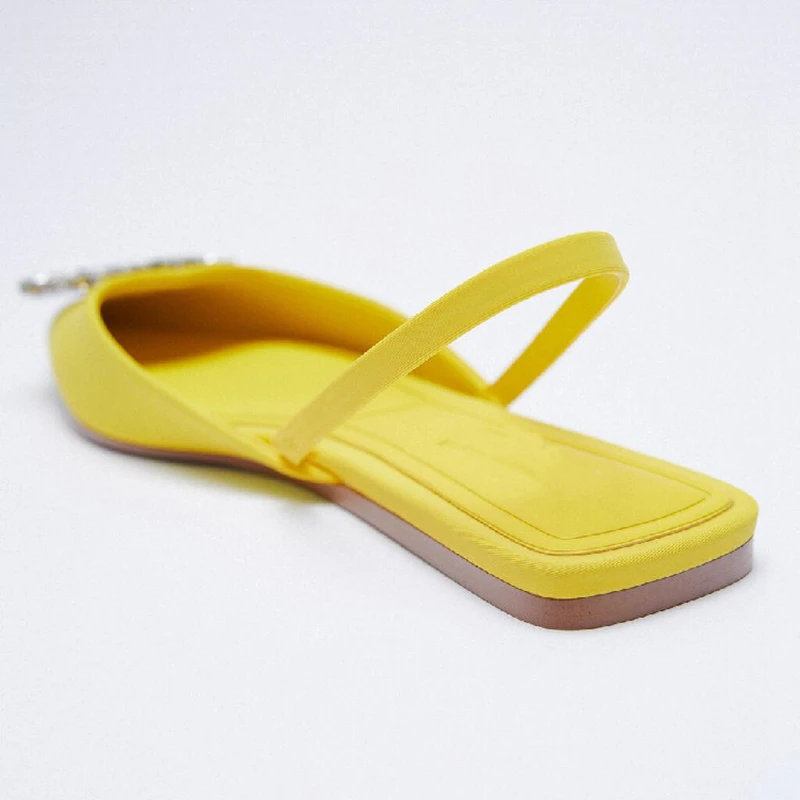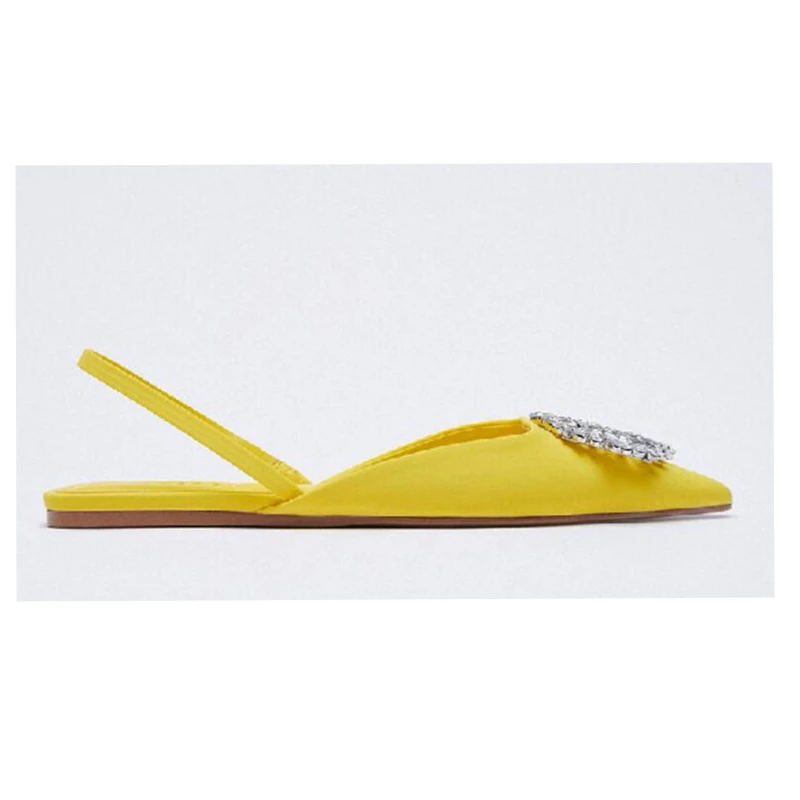 Модные брендовые сандалии SUOJIALUN с пряжкой и кристаллами, туфли на плоской подошве с острым носком и ремешком на пятке, туфли без застежки, желтые классические туфли-лодочки