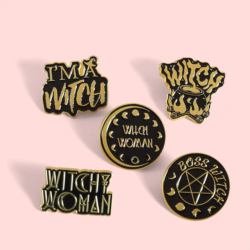 Броши с надписью темный черный огонь ведьма женщина эмалевые булавки черный волшебник гадание лацкан значок сумка подарок для друзей