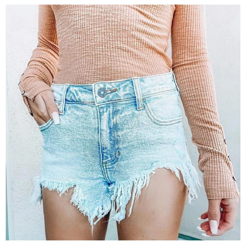 Женские модные повседневные Летние крутые джинсовые шорты для девушек с высокой талией с меховой подкладкой и открытыми штанинами, сексуальные короткие джинсовые шорты