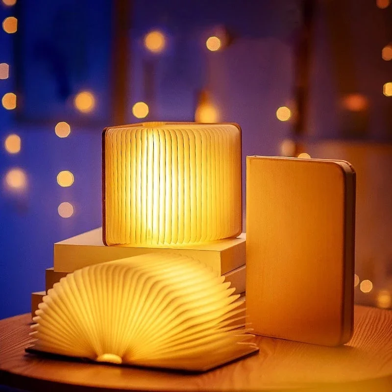 Деревянный ночник для книг, Складная Настольная лампа с USB-зарядко...