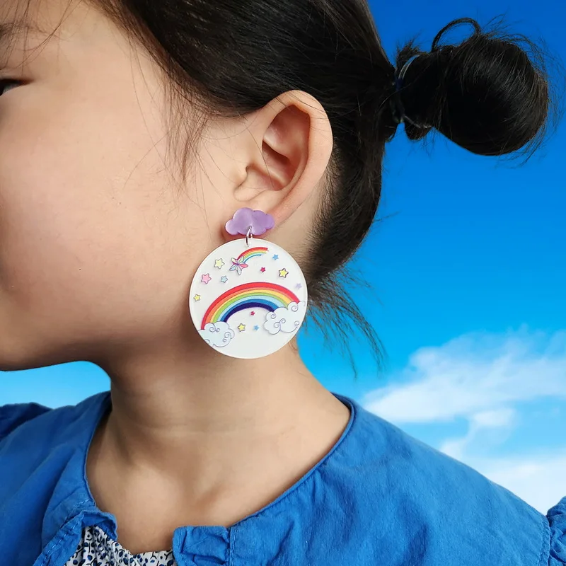 Акриловые Счастливые улыбающиеся лицо солнце звезда Небесный Радуга облако цвета модные ювелирные изделия Необычные висячие серьги милые модные ювелирные изделия