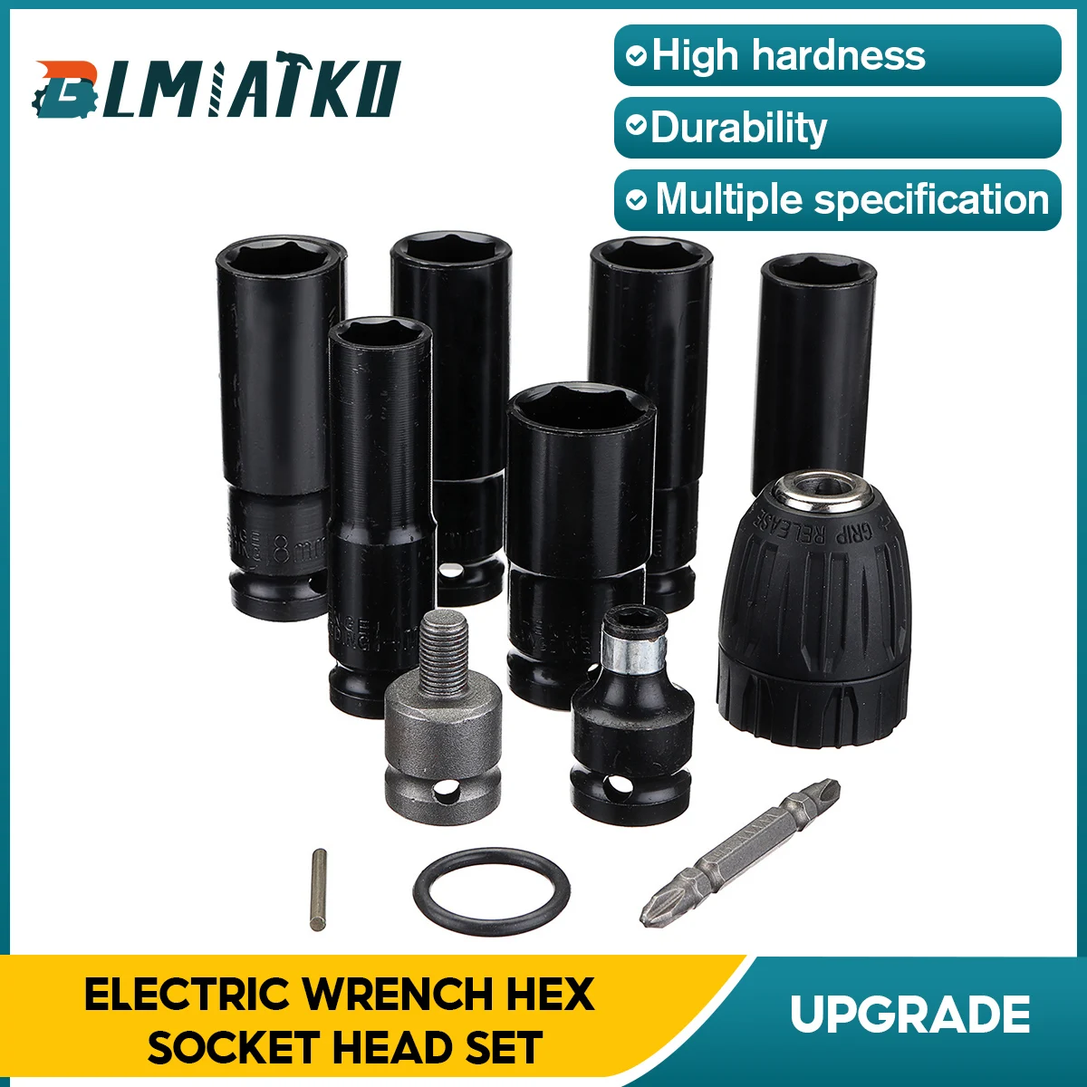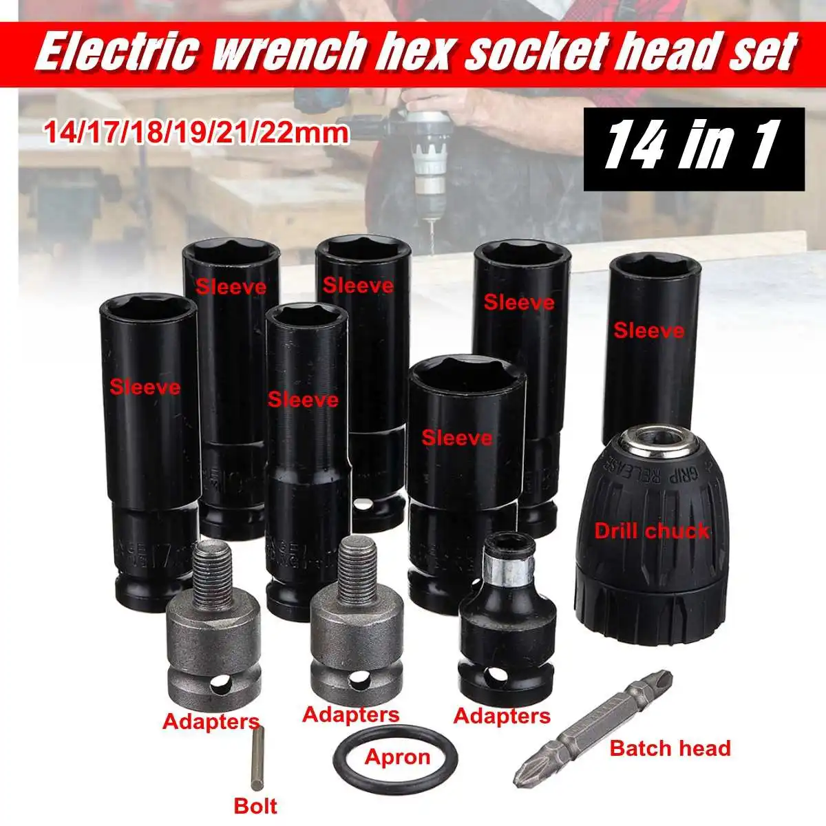 Набор электрических гаечных ключей, 12 в 1 с шестигранной головкой, адаптер для электрического ключа, 6 втулок
