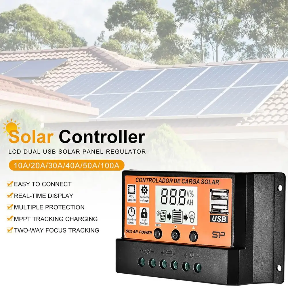 Солнечный контроллер 10-100 А, контроллер заряда с двойным USB ЖК-д...