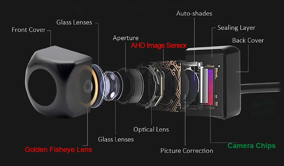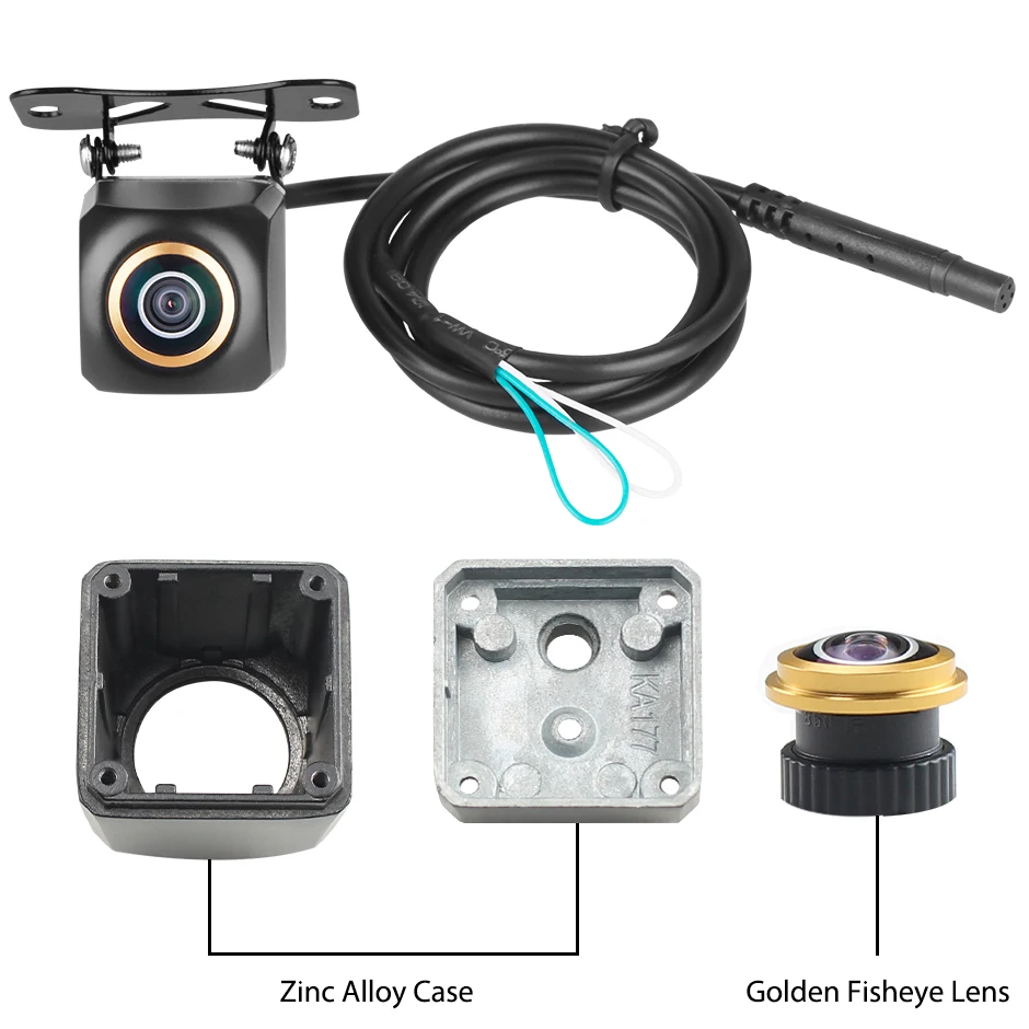 1. Датчик изображения: микросхемы Sony MCCD 1409 или 70802. ТВ-система: опция NTSC / PAL3. ТВ-линия: 1000 ТВ-линия4. Эффективные пиксели: 1280x720 пикселей или 720*480P5. Низкий светильник ночного видения, 15 м видимое расстояние для ночи.6. Чехол из цинкового сплава, 4 стеклянных объектива «рыбий глаз».7. Мощность: 12 В ~ 24 В постоянного тока8. Длина видеокабеля: 6 м9. Питание кабель Длина: 1,5 м10. Подходит для Android dvd-плеера и любого TFT автомобильного монитора.