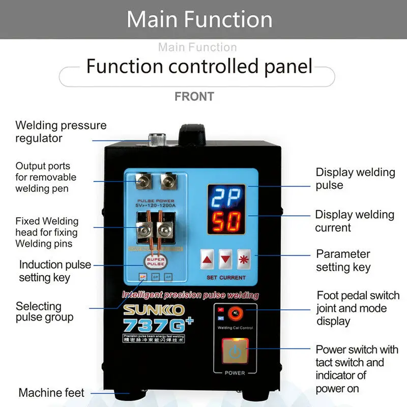 100% новые и высококачественные.Тип: точечный сварочный аппарат для батареиМодель: SUNKKO 737G +Входное напряжение: 110 В/220 ВМощность: 4,3 кВт (Мгновенная)Макс. Толщина сварки: 0,35 ммСварочный ток: 120A-1200AПредохранитель: 20A предохранитель (110V-30A предохранитель)Применение: сварка литиевой батареиХарактеристики: Автоматическая точечная сварка или управление педальюТариф: цена нашей продукции не включает тарифы. Когда товары проходят таможню, может потребоваться оплатить тариф. Вы можете проконсультироваться с местными таможенными правилами.Посылка содержит:1:737 г + точечный сварщик * 12: Руководство по эксплуатации * 13:70BN точечная сварочная ручка * 13: проводной ножной переключатель * 14: точечный сварочный штифт * 2 пары5: гаечный ключ * 16: Предохранитель * 27: электрический шлифовальный станок * 18:6 батарейный блок * 19: образец никелевой ленты * 50 шт.