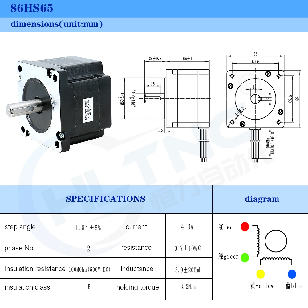 Посылка включает:1 шаговый двигатель 86HS65 Nema34 (длина 3,5 нм 65 мм)